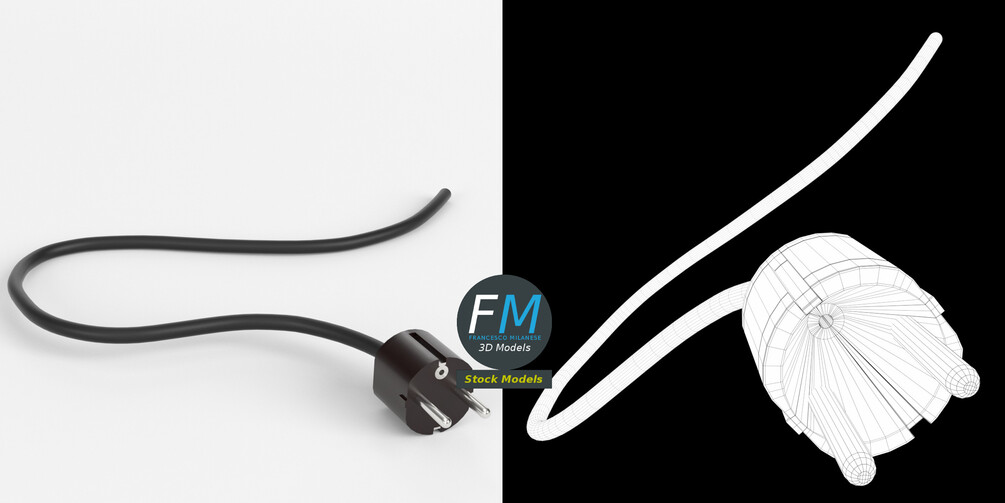 Schuko power plug 3D Model, nr. 2 in my collection. 2 individual objects (plug, cable; so, you can easily delete the cable if you want to replace it), sharing the same non overlapping UV Layout map, Material and PBR Textures sets. Production-ready 3D Model, with PBR materials, textures, non overlapping UV Layout map provided in the package.