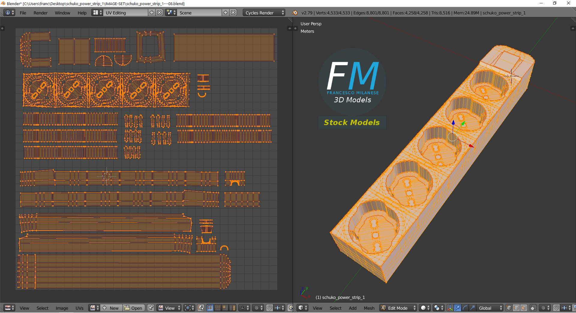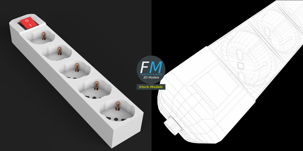 Schuko power strip 3D Model, nr. 1 in my collection. Production-ready 3D Model, with PBR materials, textures, non overlapping UV Layout map provided in the package.