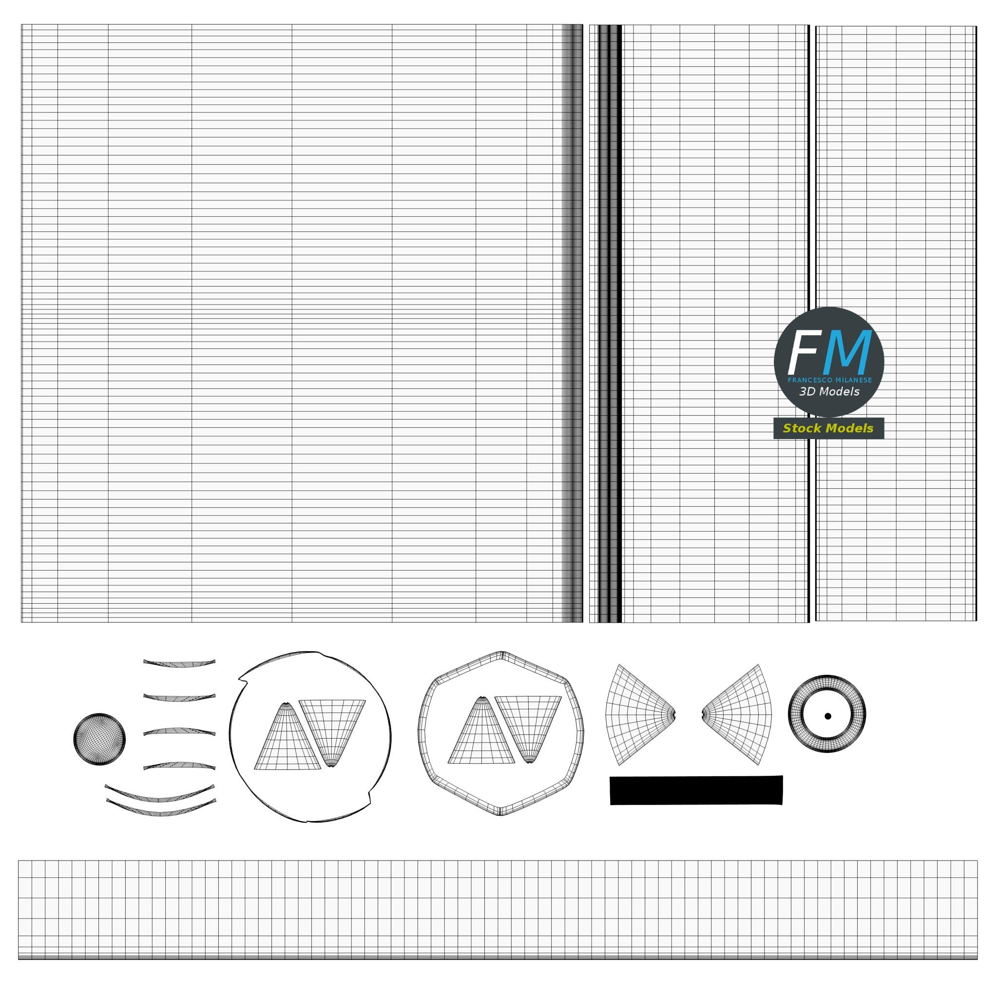 Easily customizable: UV unwrapped geometries, so you can create new Textures (or modify the existing ones) using the UV Layout maps provided in the package (as png with alpha).