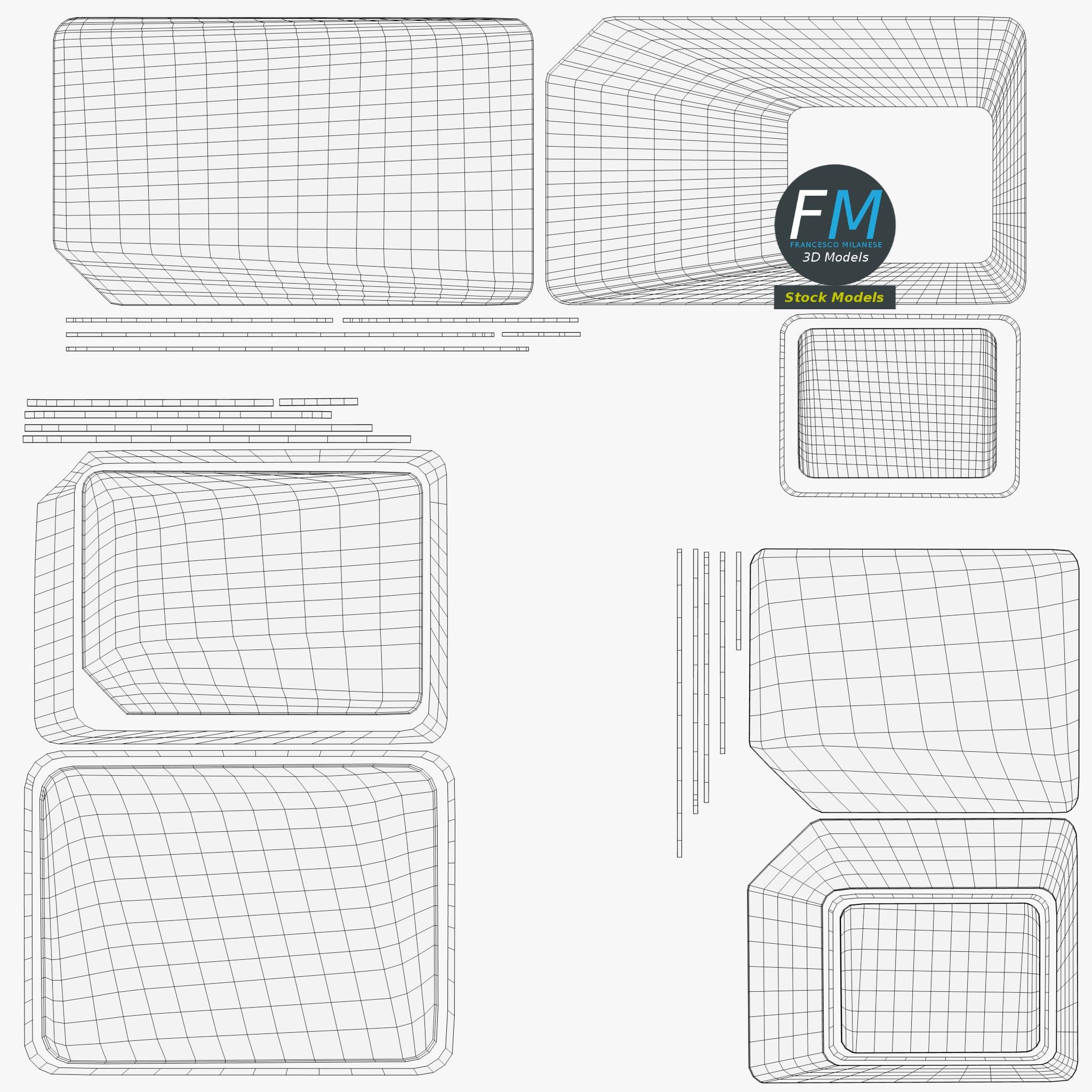 3 Objects (meshes), 1 PBR Material, UV unwrapped (non overlapping UV Layout map provided in the package); UV-mapped Textures.