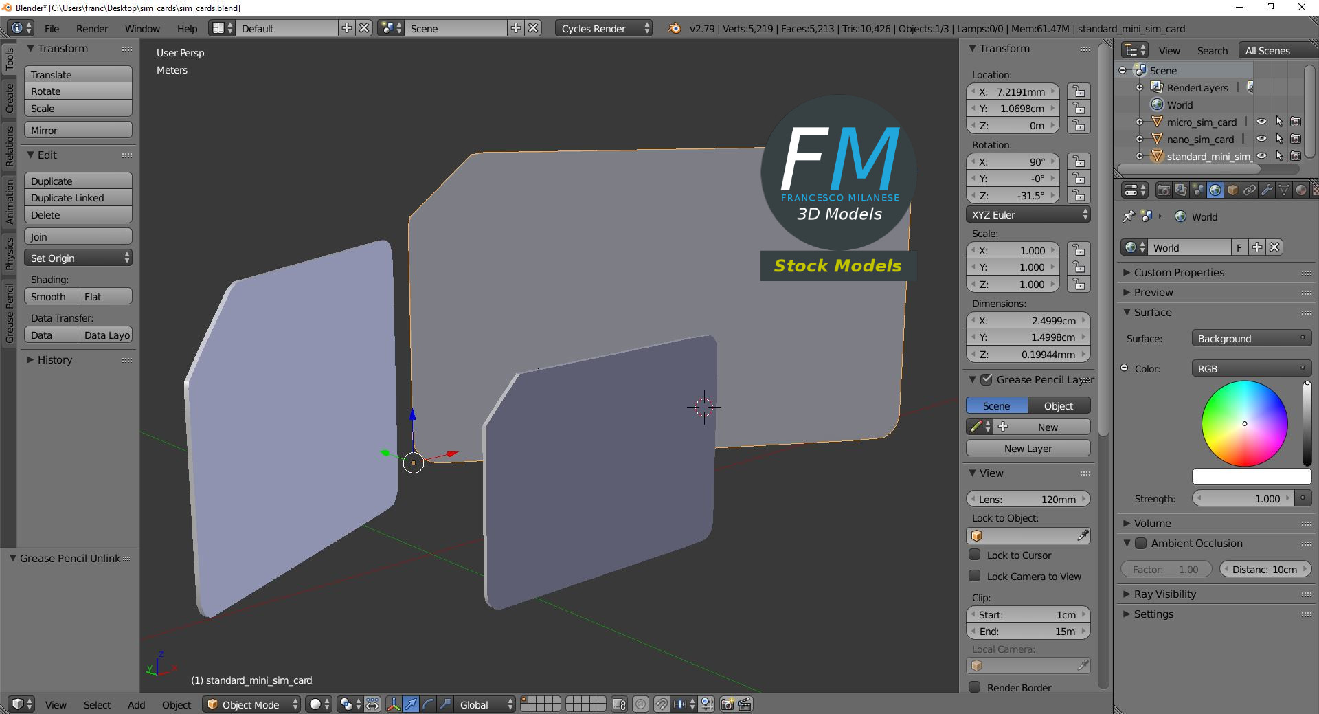 SIM cards 3D Models. 3 individual objects (standard mini sim card, micro sim card, nano sim card), sharing the same non overlapping UV Layout map, Material and PBR Textures set. Production-ready 3D Model, with PBR materials, textures, non overlapping UV Layout map provided in the package.