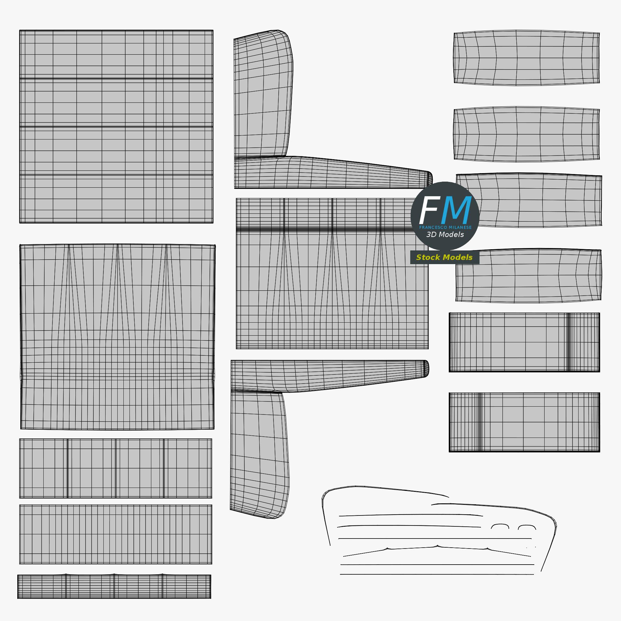 Easily customizable: UV unwrapped geometries, so you can create new Textures (or modify the existing ones) using the UV Layout maps provided in the package (as png with alpha).