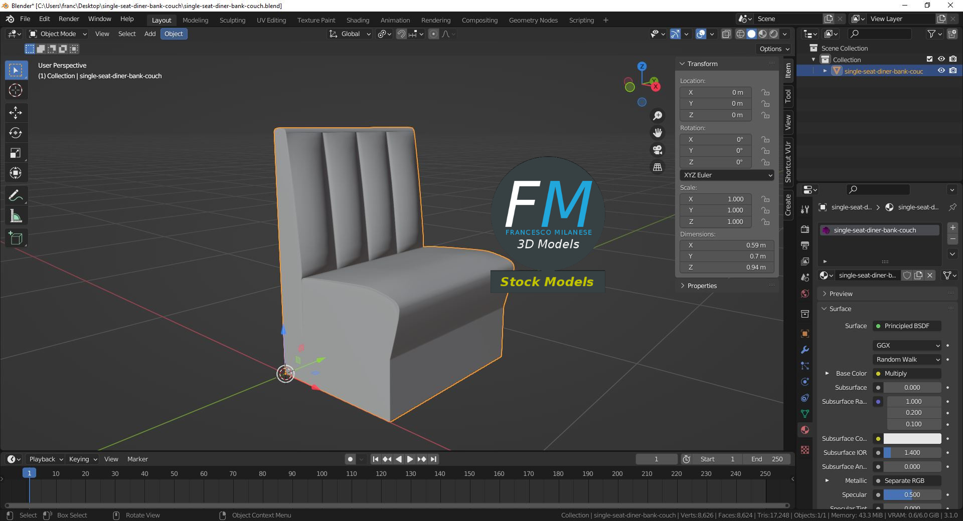 3D MODEL - Single seat diner bank couch