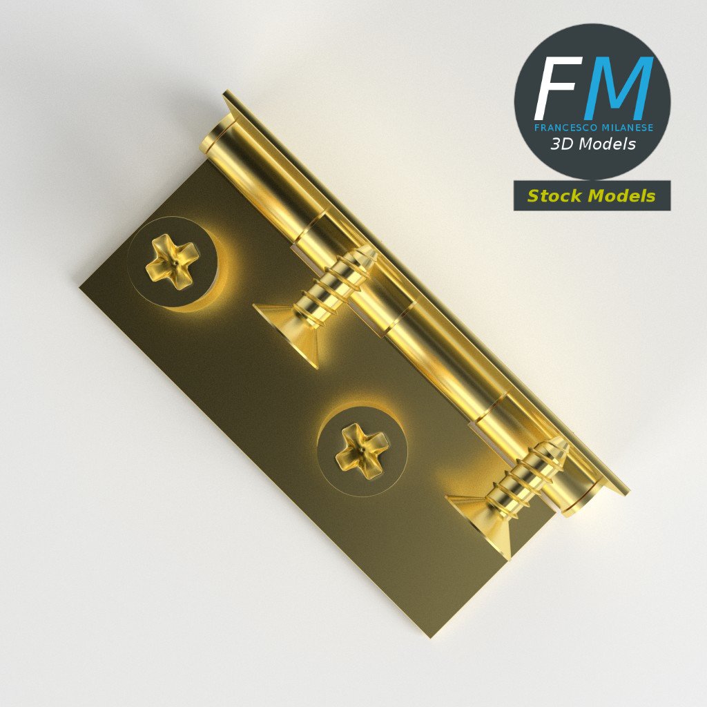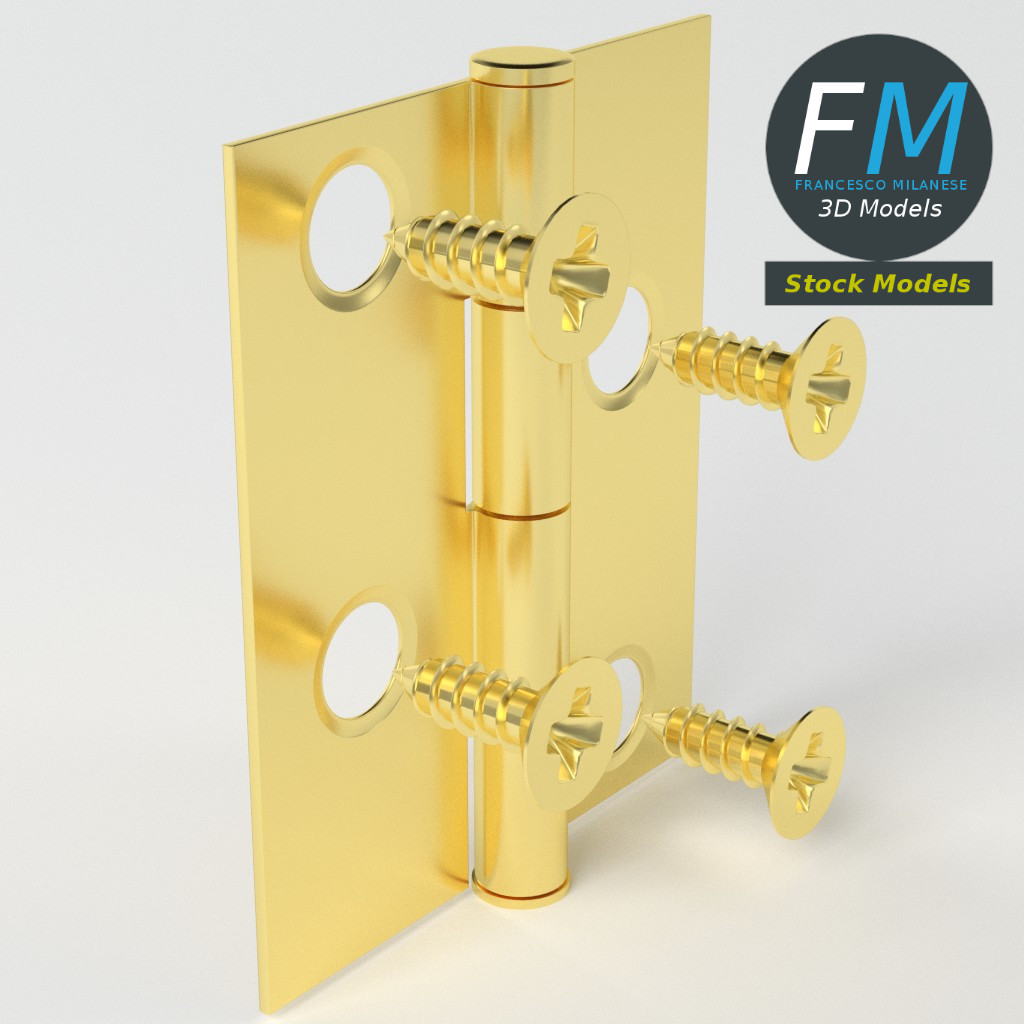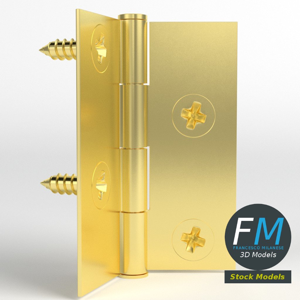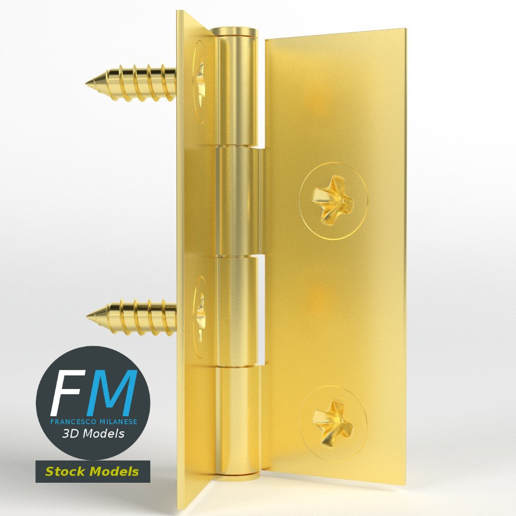 Small hinge for boxes 3D Models set. 6 individual objects (2 hinge parts, 4 nails; so, you can easily rotate or even animate them) sharing the same non overlapping UV Layout map, Material and PBR Textures set. Production-ready 3D Model, with PBR materials, textures, non overlapping UV Layout map provided in the package.