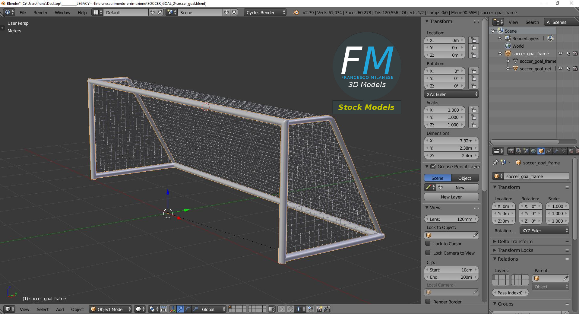 Soccer goal 3D Model, nr. 2 in my collection. 2 individual objects (frame, net), each one with its own non overlapping UV Layout map, Material and PBR Textures set. Production-ready 3D Model, with PBR materials, textures, non overlapping UV Layout map provided in the package.