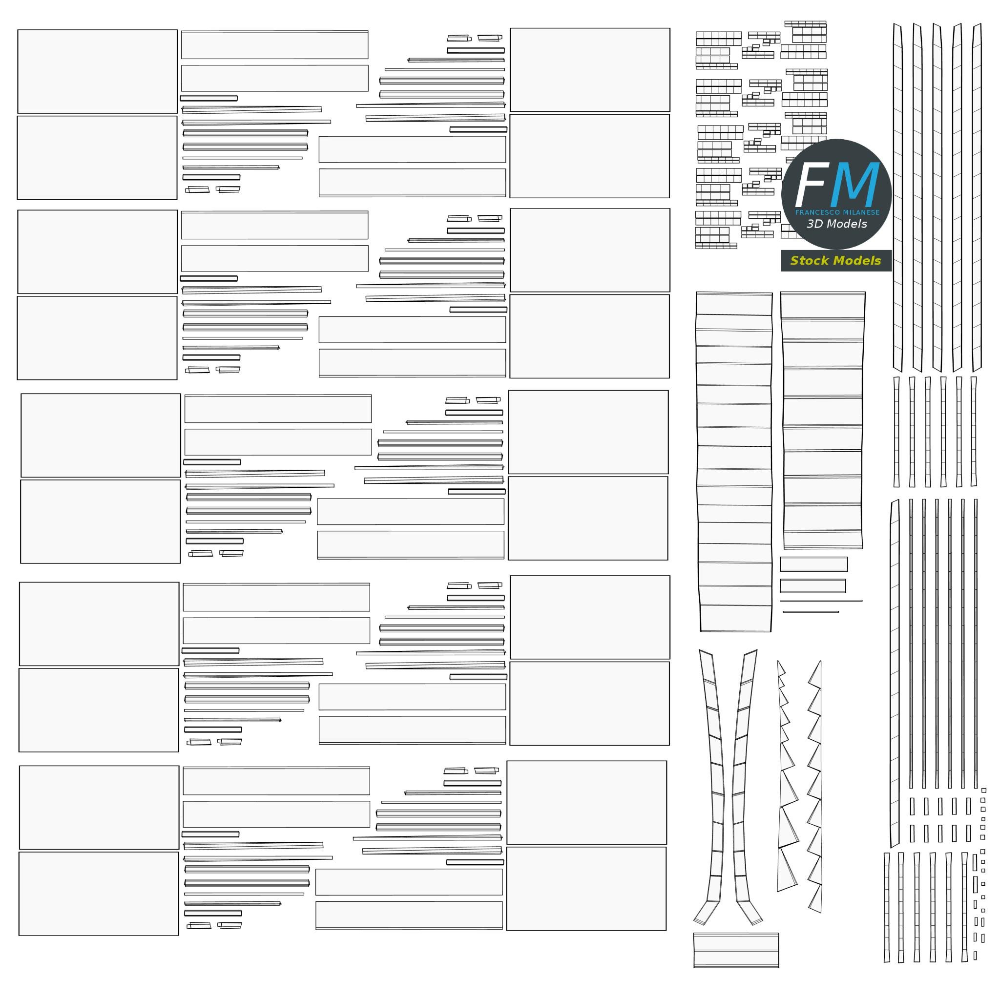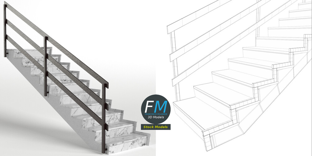 Stairs module 3D Model. Production-ready 3D Model, with PBR materials, textures, and non overlapping UV Layout map provided in the package.