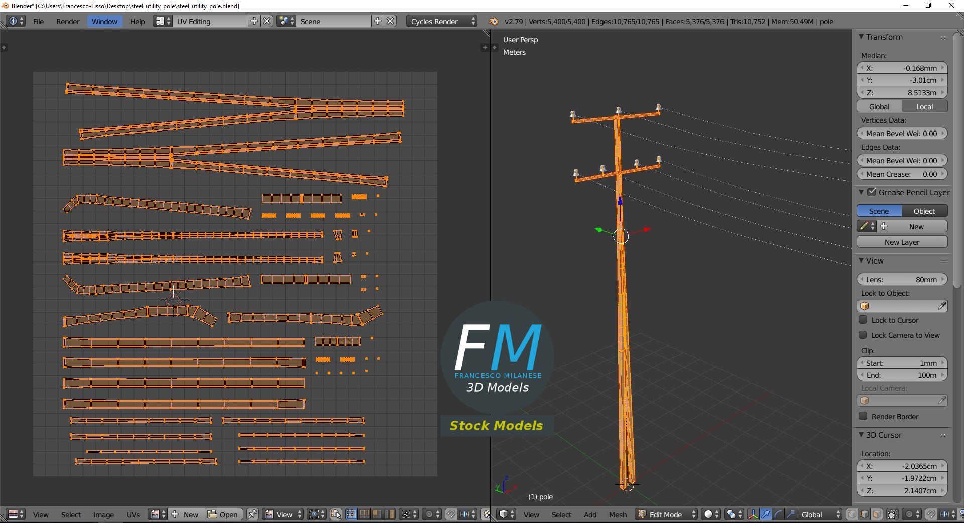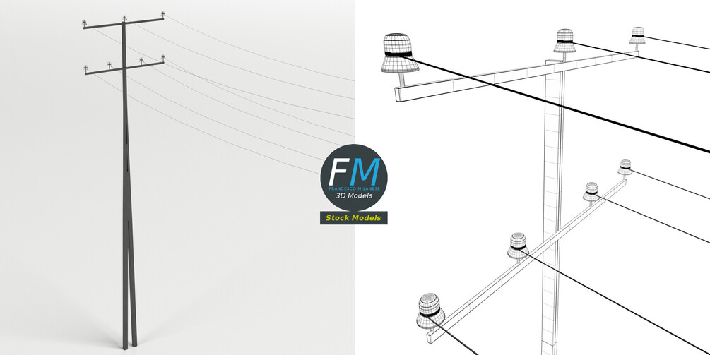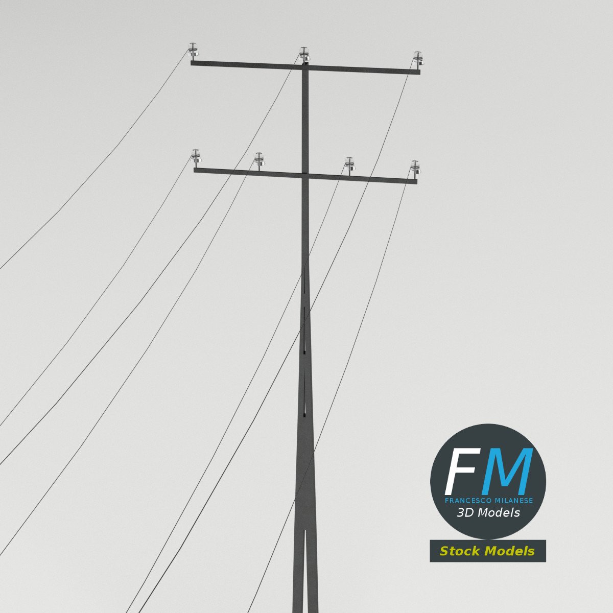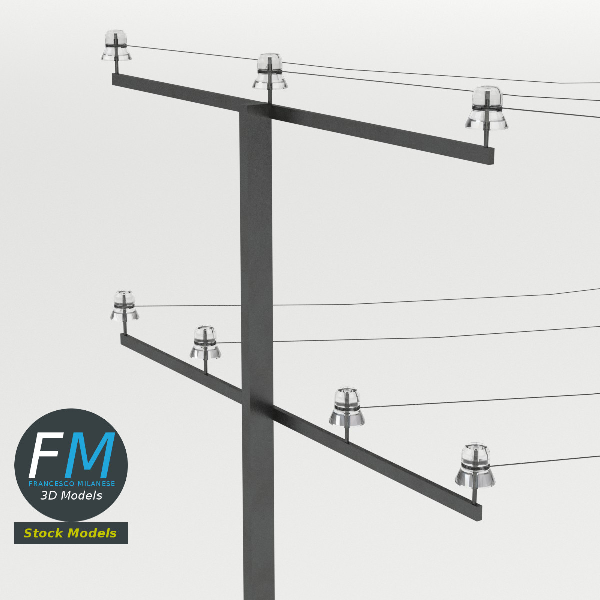 Steel utility pole 3D Model. 3 objects (pole, cables, glass insulators), parented; you can arrange them in an array to create your scene. Each object has its own non overlapping UV Layout map, Material and PBR Textures set. Production-ready 3D Model, with PBR materials, textures, non overlapping UV Layout map provided in the package.