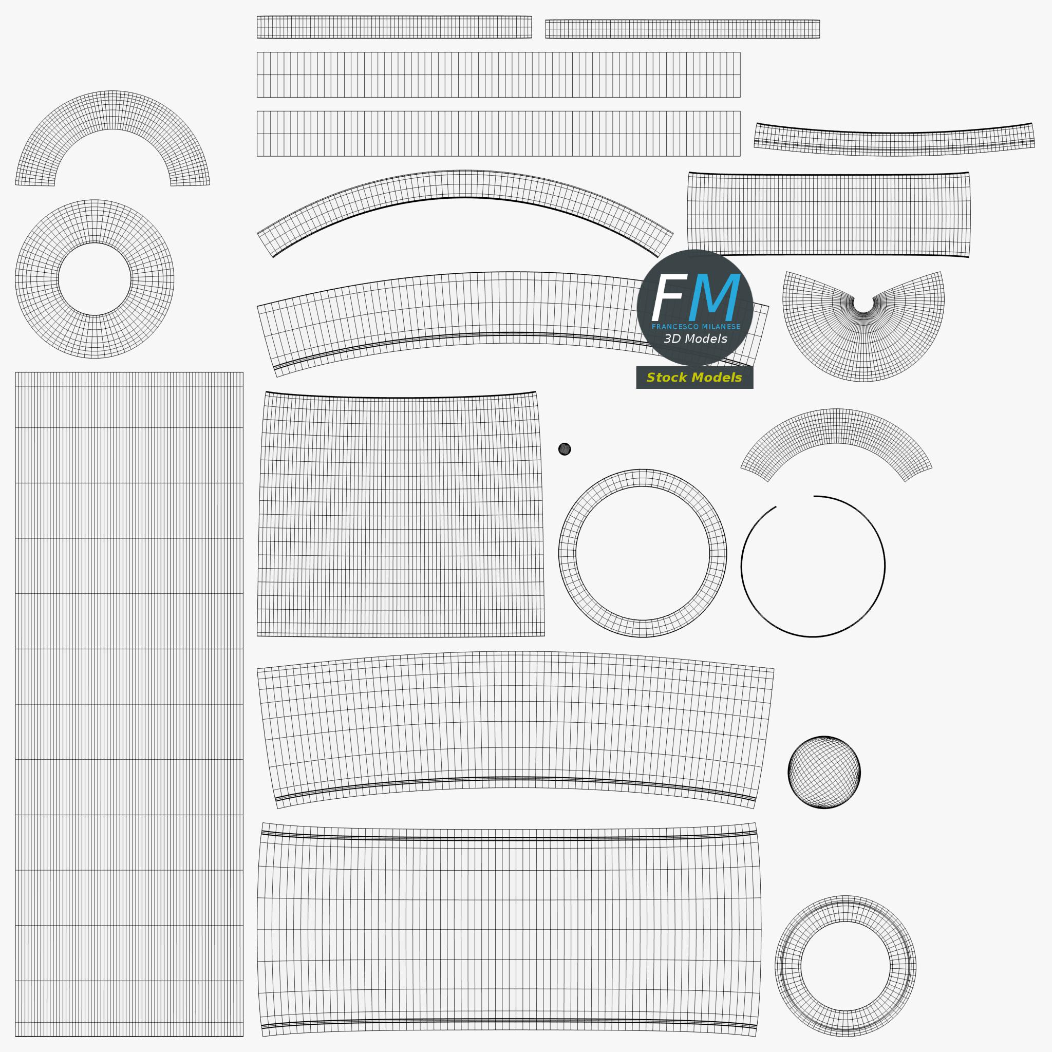 Easily customizable: UV unwrapped geometries, so you can create new Textures (or modify the existing ones) using the UV Layout maps provided in the package (as png with alpha).