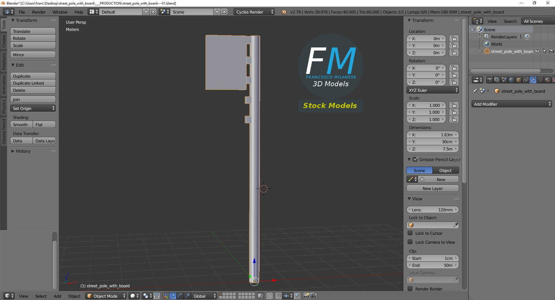 Sketchfab 3D preview: https://sketchfab.com/3d-models/street-pole-with-board-5aee62d8747248e3b296a938dc92d2b3