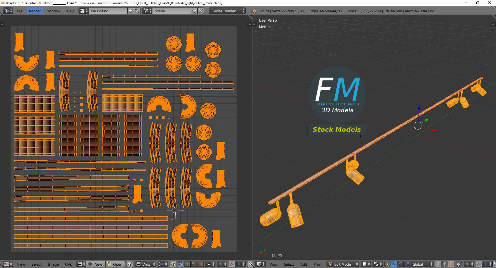 Easily customizable: UV unwrapped geometries, so you can create new Textures (or modify the existing ones) using the UV Layout maps provided in the package (as png with alpha).