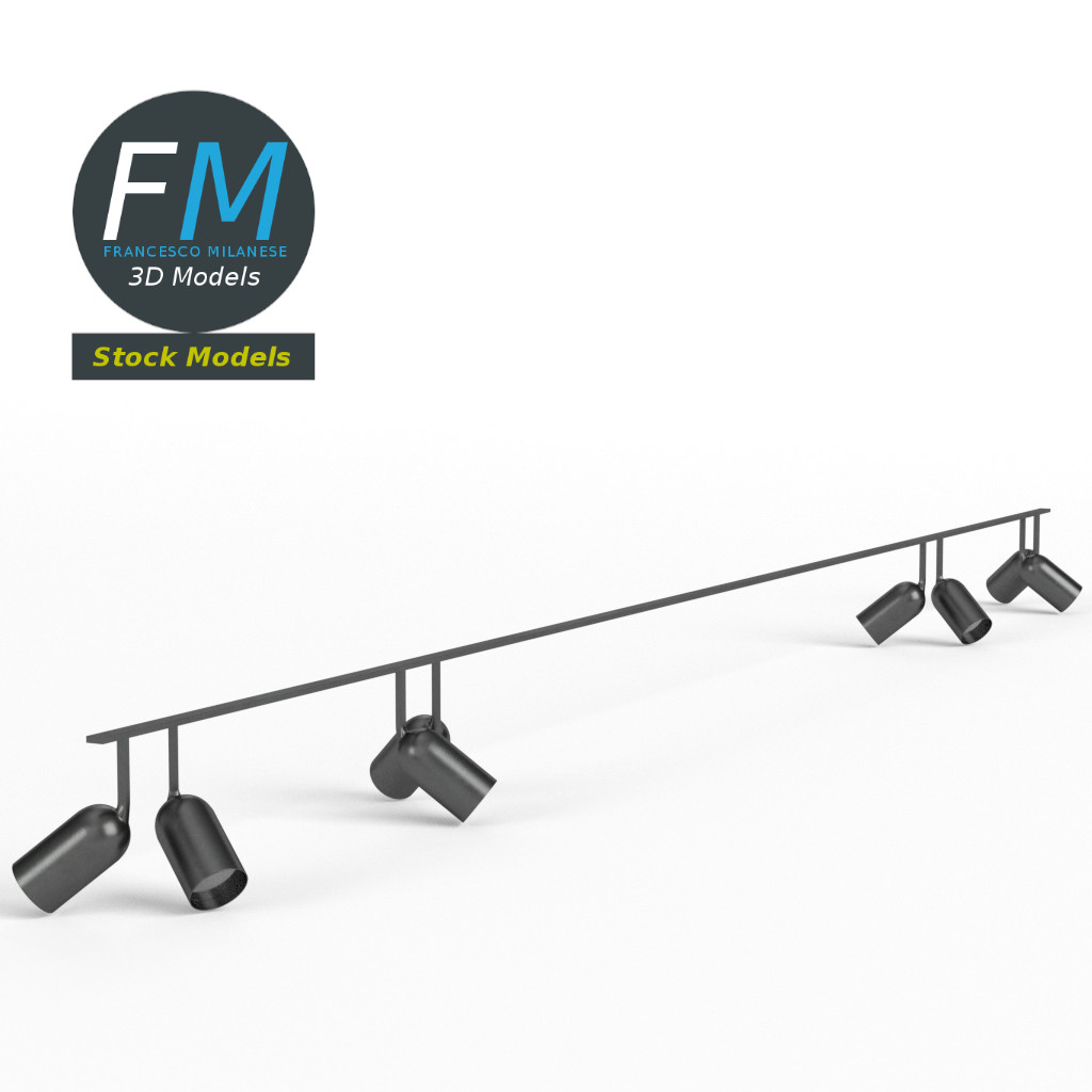 Studio light ceiling frame 3D Model. 2 objects (rig, lenses), each one with its own non overlapping UV Layout map, Material and PBR Textures set. Production-ready 3D Model, with PBR materials, textures, non overlapping UV Layout map provided in the package.