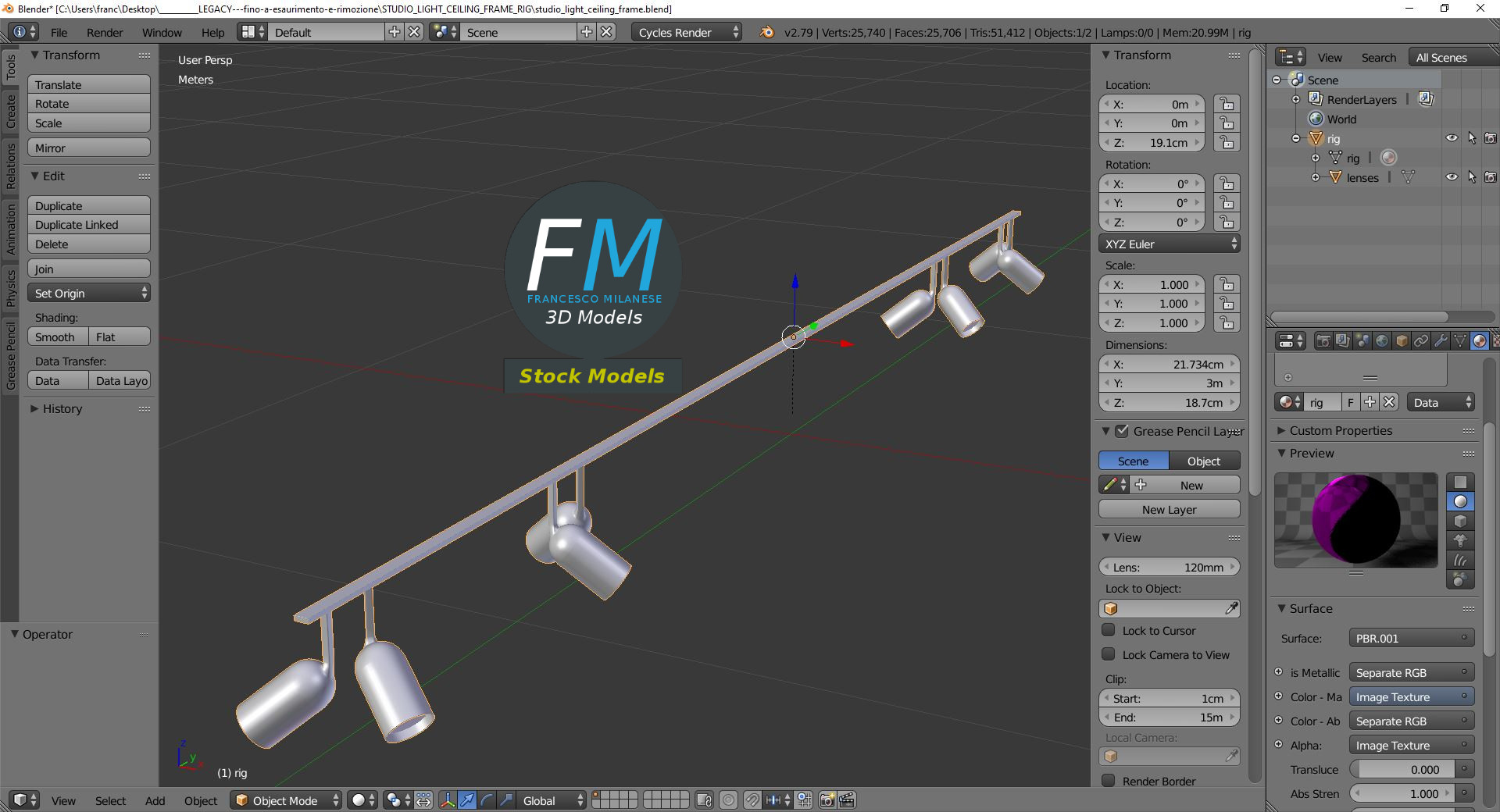 IMPORTANT --- Main renderings made in Blender 3D 2.80 + Cycles (or Eevee) using an HDR Environment Texture Image which is NOT provided in the package!