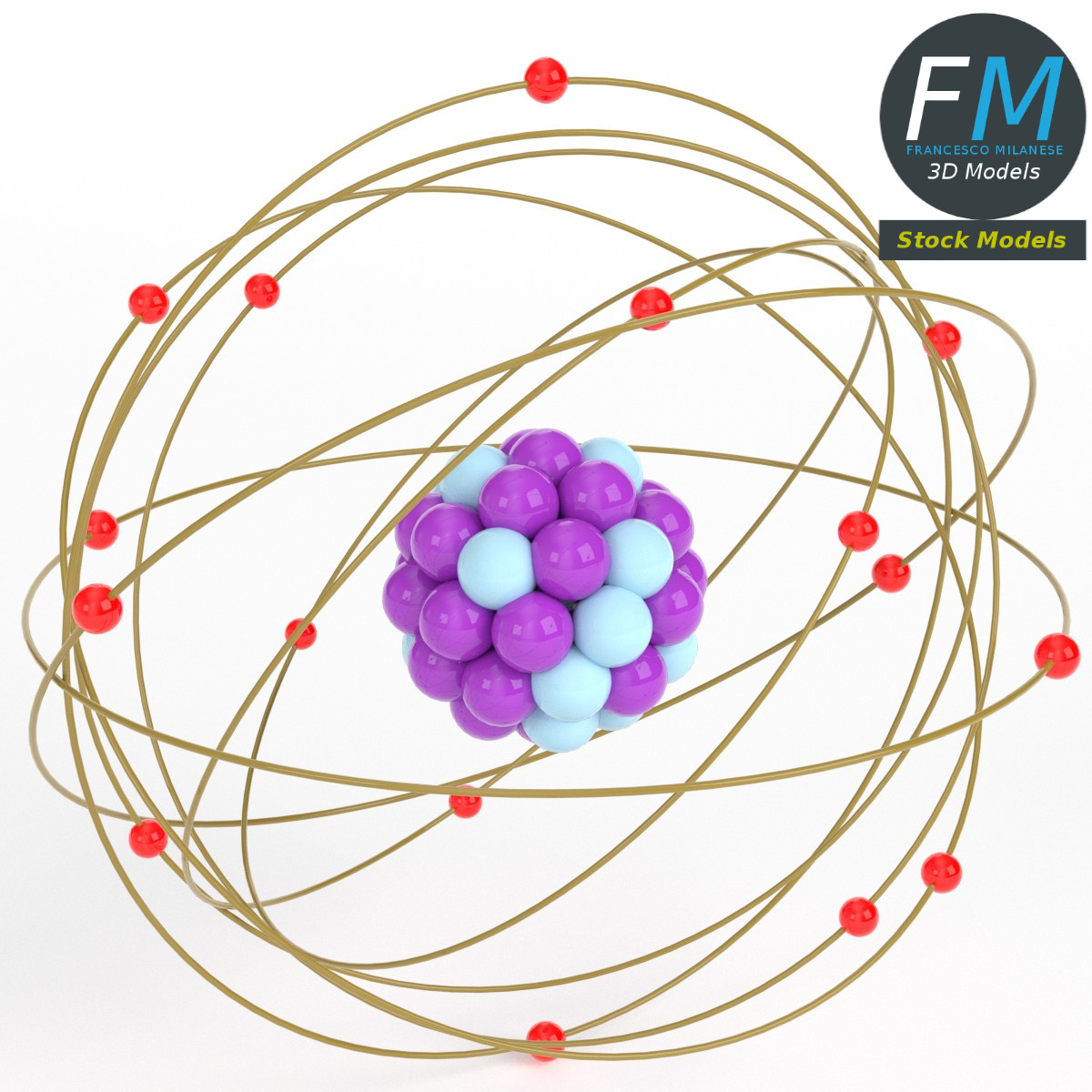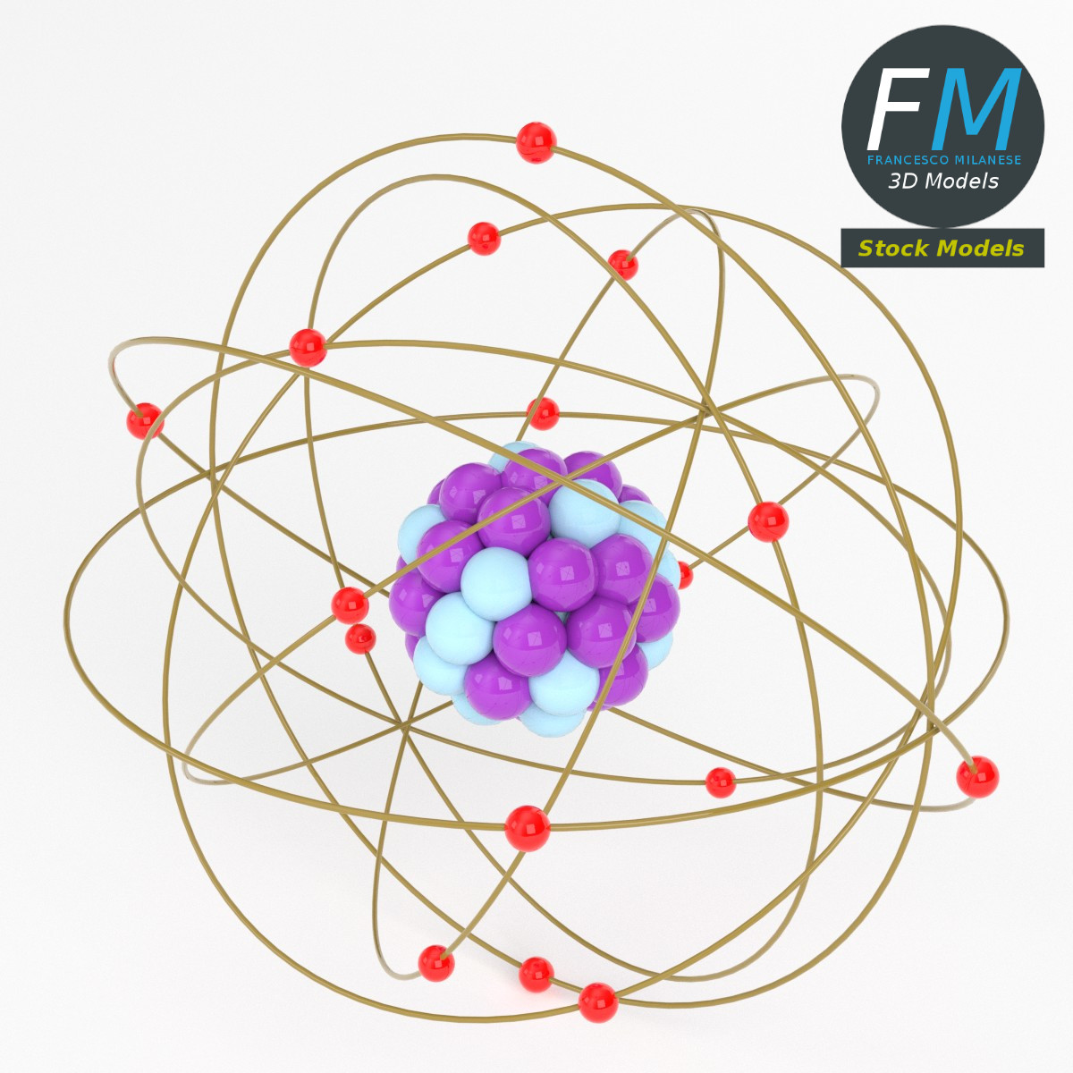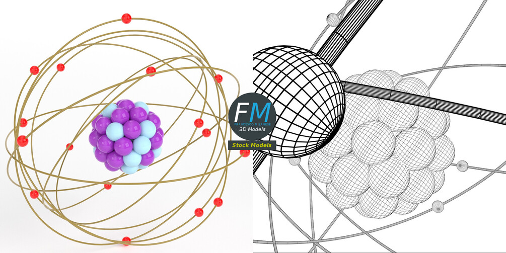 fm3d, game ready, vr, ar, atom, nucleus, electrons, orbits, quantum, stylized, science, physics