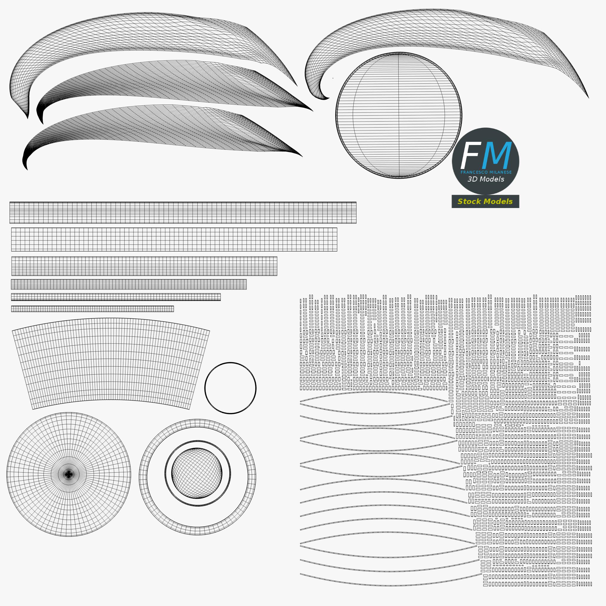 Easily customizable: UV unwrapped geometries, so you can create new Textures (or modify the existing ones) using the UV Layout maps provided in the package (as png with alpha).