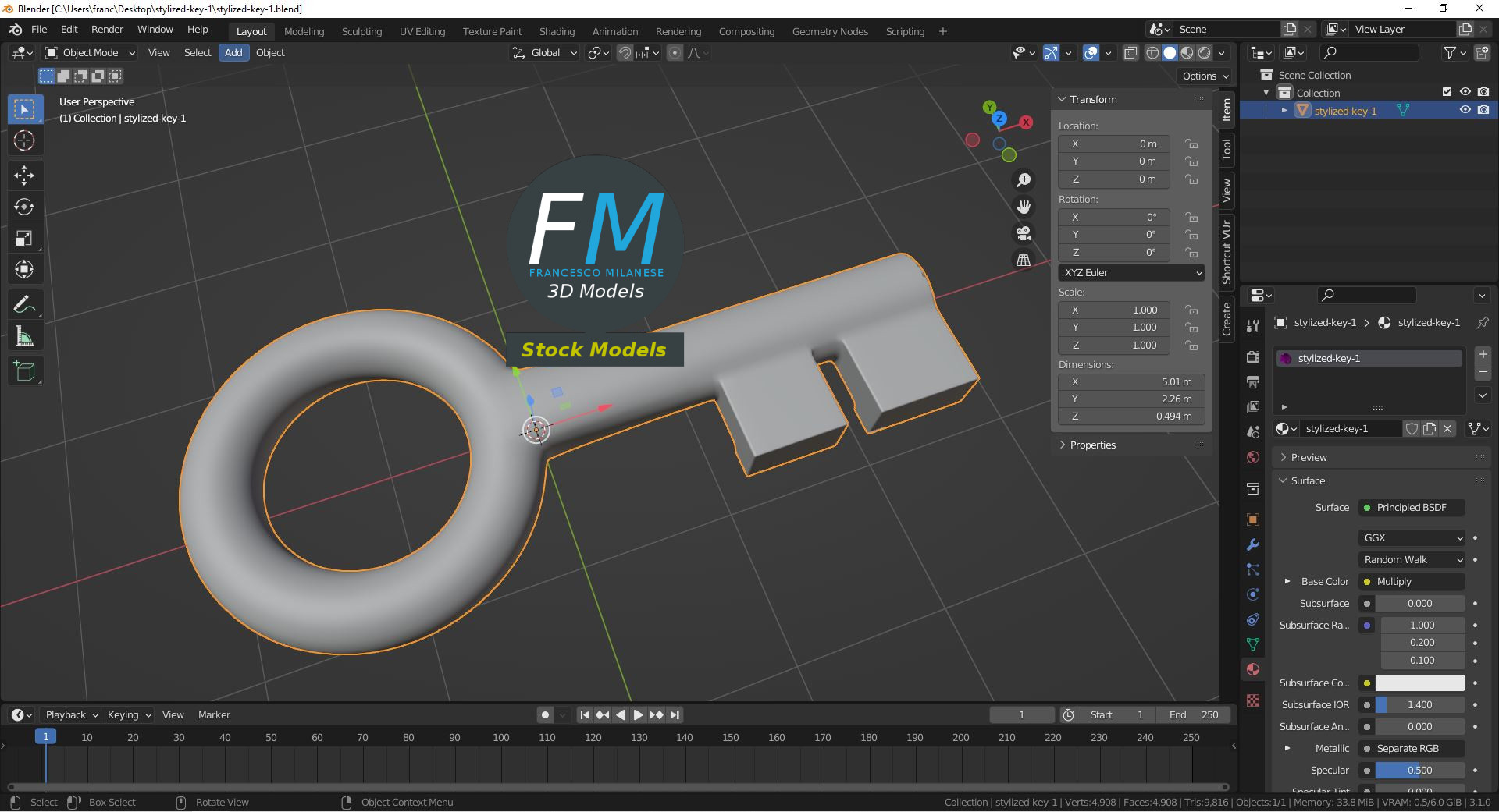 Sketchfab 3D preview: https://sketchfab.com/3d-models/stylized-key-1-6a0b5c733f574d73a8c08cd4bcfcbc9c