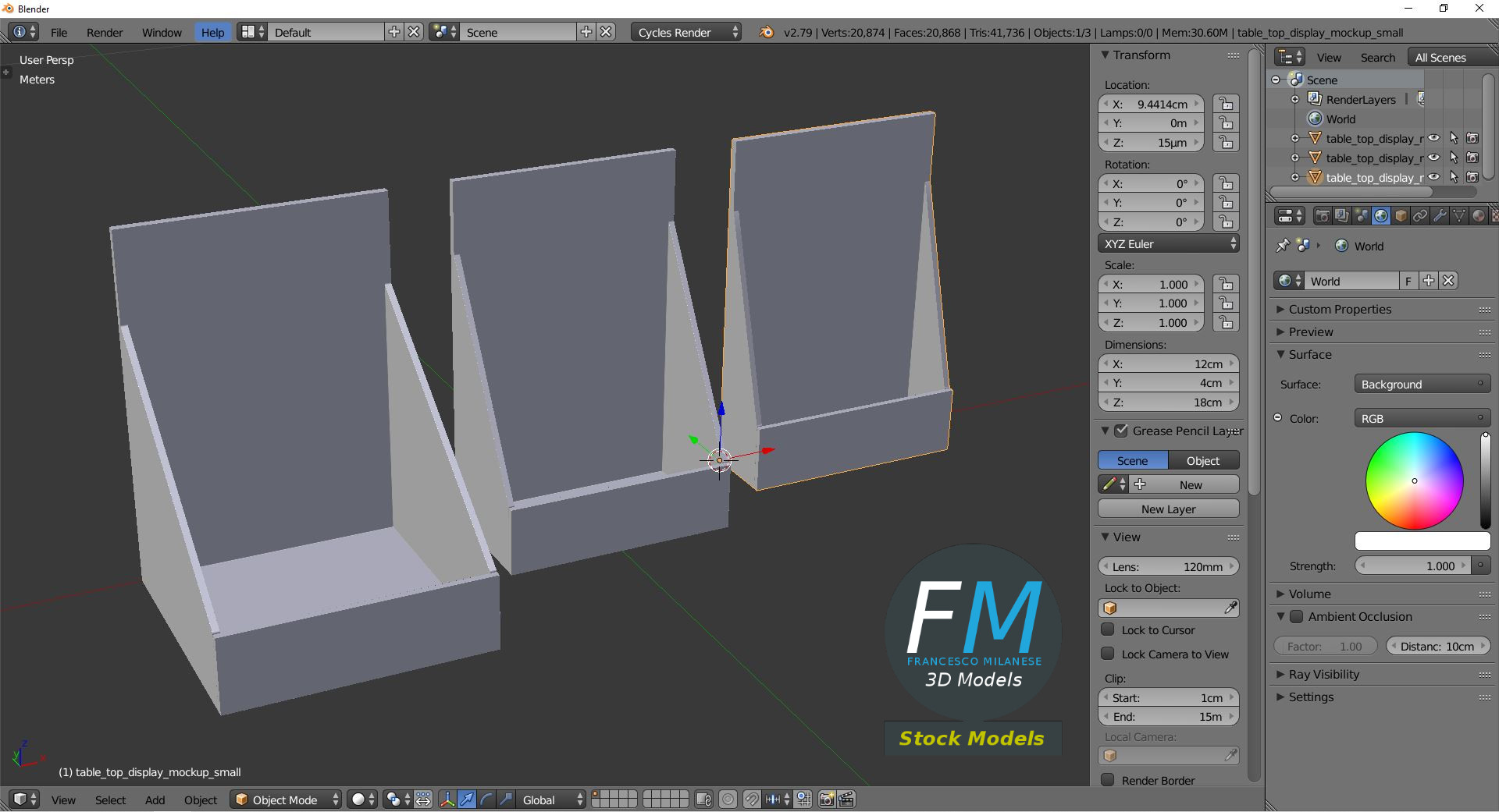 Table top display mockups 3D Models. 3 individual objects, each one with its own non overlapping UV Layout map, Material and PBR Textures set. Production-ready 3D Model, with PBR materials, textures, non overlapping UV Layout map provided in the package.