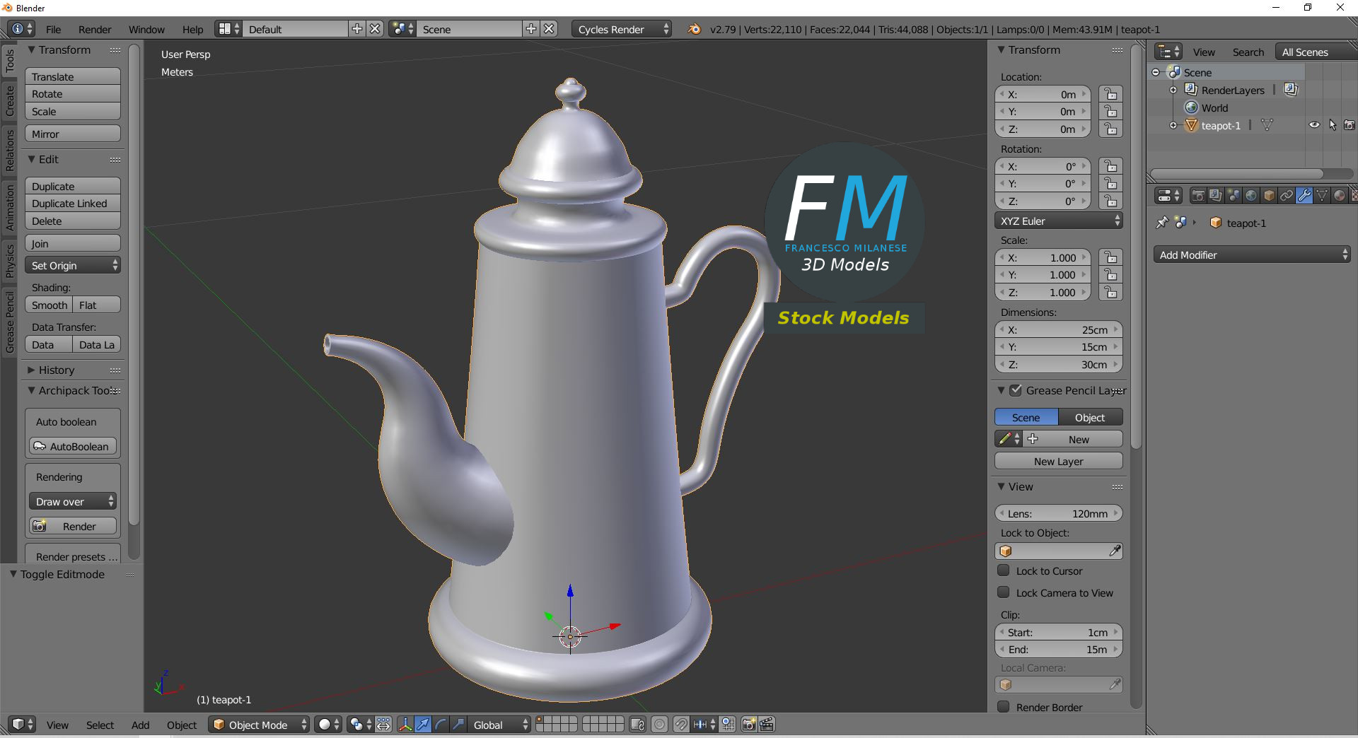 Teapot 3D Model, nr. 1 in my collection. Production-ready 3D Model, with PBR materials, textures, non overlapping UV Layout map provided in the package.