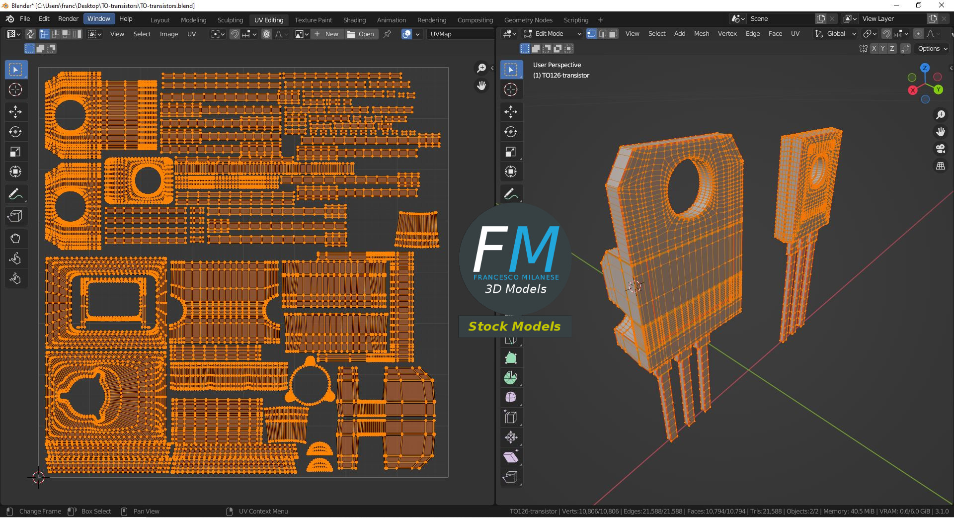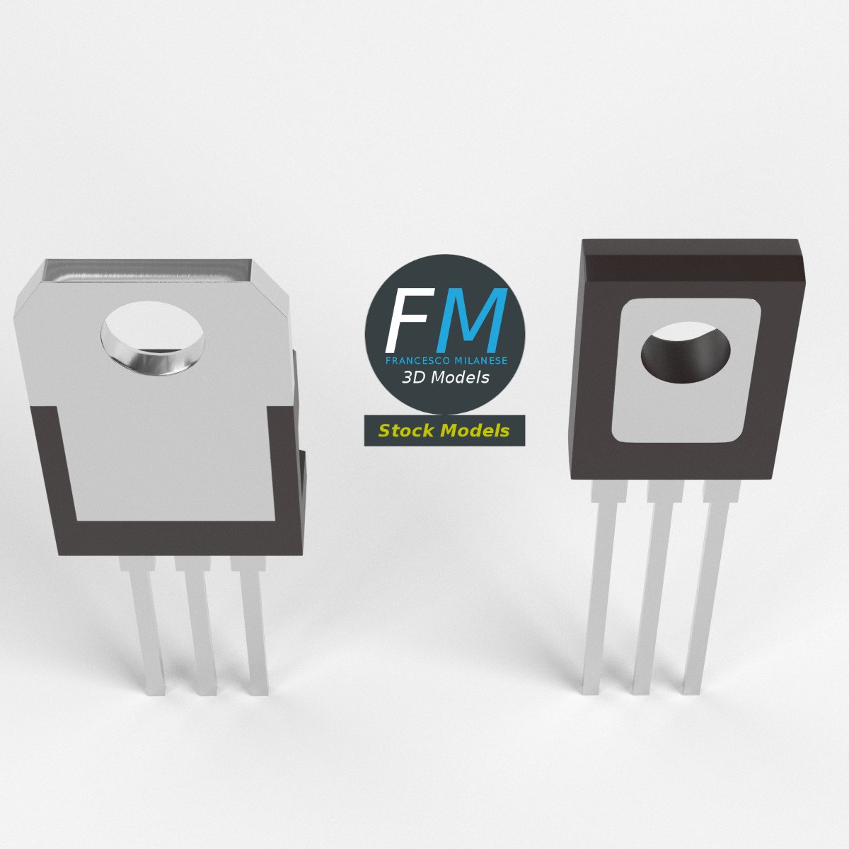TO-126 and TO-220 transistors 3D Model. 2 individual objects sharing the same non overlapping UV Layout map, Material and PBR Textures set. Production-ready 3D Model, with PBR materials, textures, non overlapping UV Layout map provided in the package.