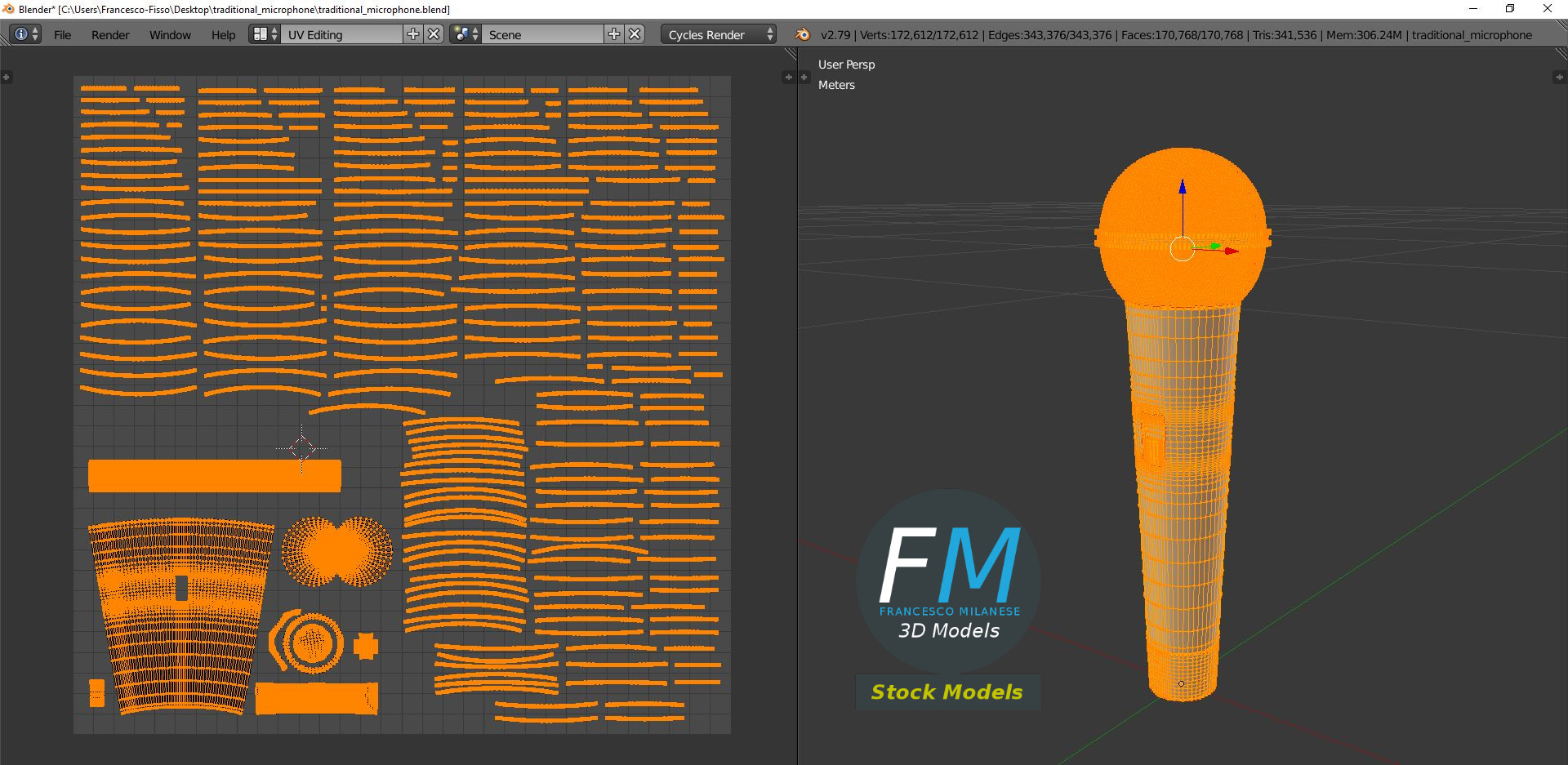 A traditional Microphone 3D Model. Production-ready 3D Model, with PBR materials, textures, and non overlapping UV Layout map provided in the package.