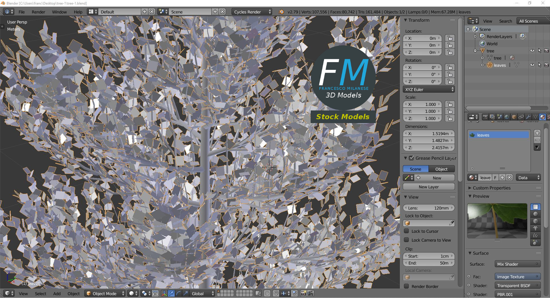A simple tree 3D Model, nr. 1 in my collection. Leaves are alpha-mapped planes (take a look at the preview and rendered images). 2 individual objects (tree, leaves), with OVERLAPPING UV Layout maps, Materials and PBR Textures sets. Production-ready 3D Model, with PBR materials, textures, overlapping UV Layout map provided in the package.