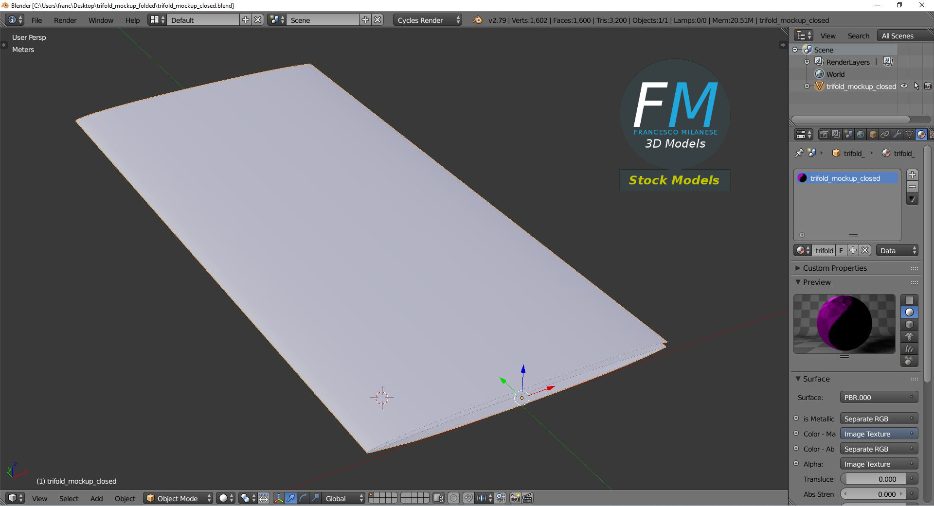 3D MODEL - Trifold mockup folded