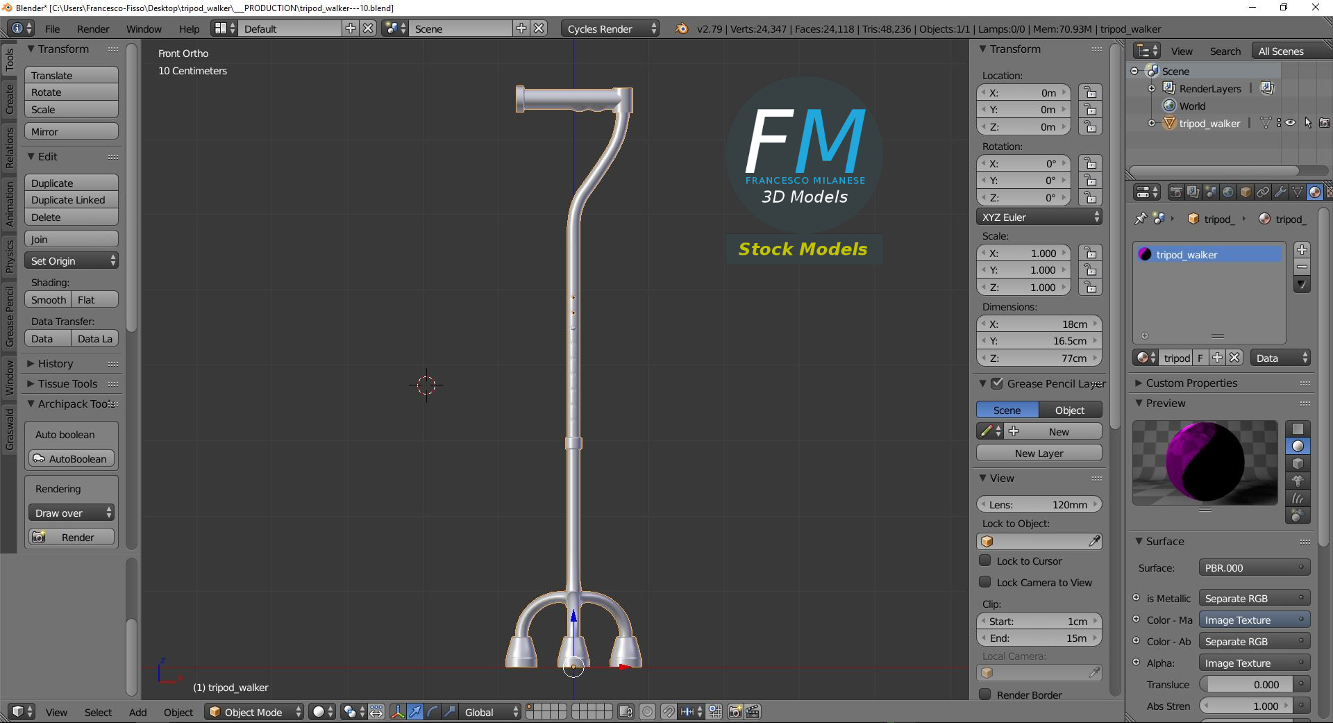 Made in Blender 3D 2.79 (Cycles materials) then exported to OBJ and FBX; materials and textures made in Substance Painter, exported for PBR, V-Ray, Unity, Unreal.