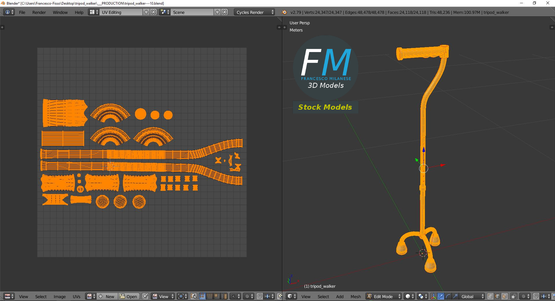 fm3d, game ready, vr, ar, tripod, walker, walking, frame, crutch, mobility, aid, medical, device
