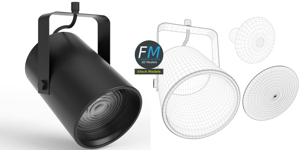 TV Studio Spot Light 3D Model. 3 objects (base, lens, emitting surface), each one with its own non overlapping UV Layout map, Material and PBR Textures set. Production-ready 3D Model, with PBR materials, textures, non overlapping UV Layout map provided in the package.