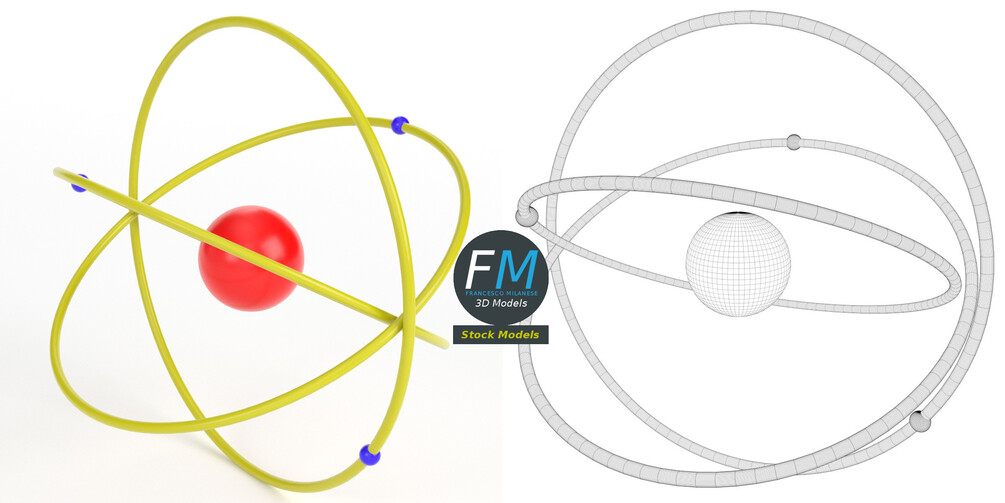 Very simplistic atom model 3D Model. 3 individual objects (nucleus, electrons, orbits), sharing the same non overlapping UV Layout map, Material and PBR Textures set. Production-ready 3D Model, with PBR materials, textures, non overlapping UV Layout map provided in the package.