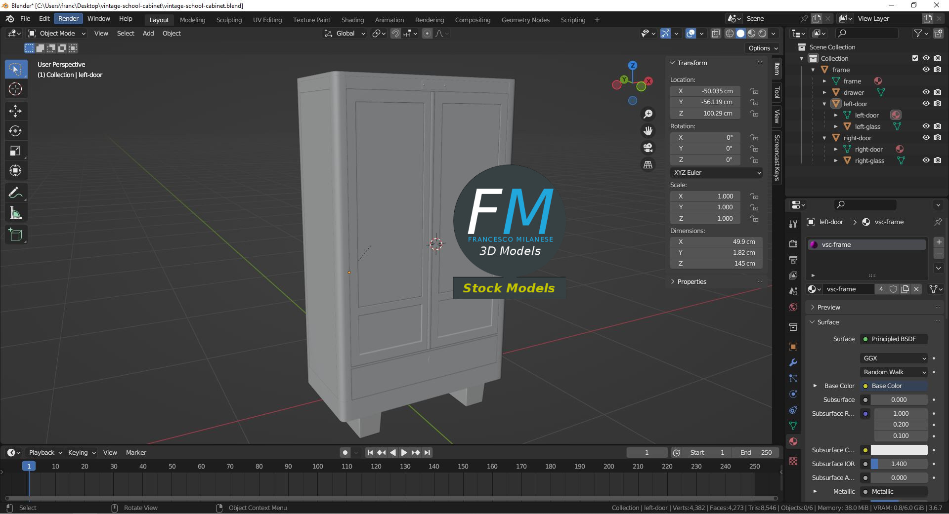 Vintage school cabinet 3D Model. Production-ready 3D Model, with PBR materials, textures, non overlapping UV Layout map provided in the package.