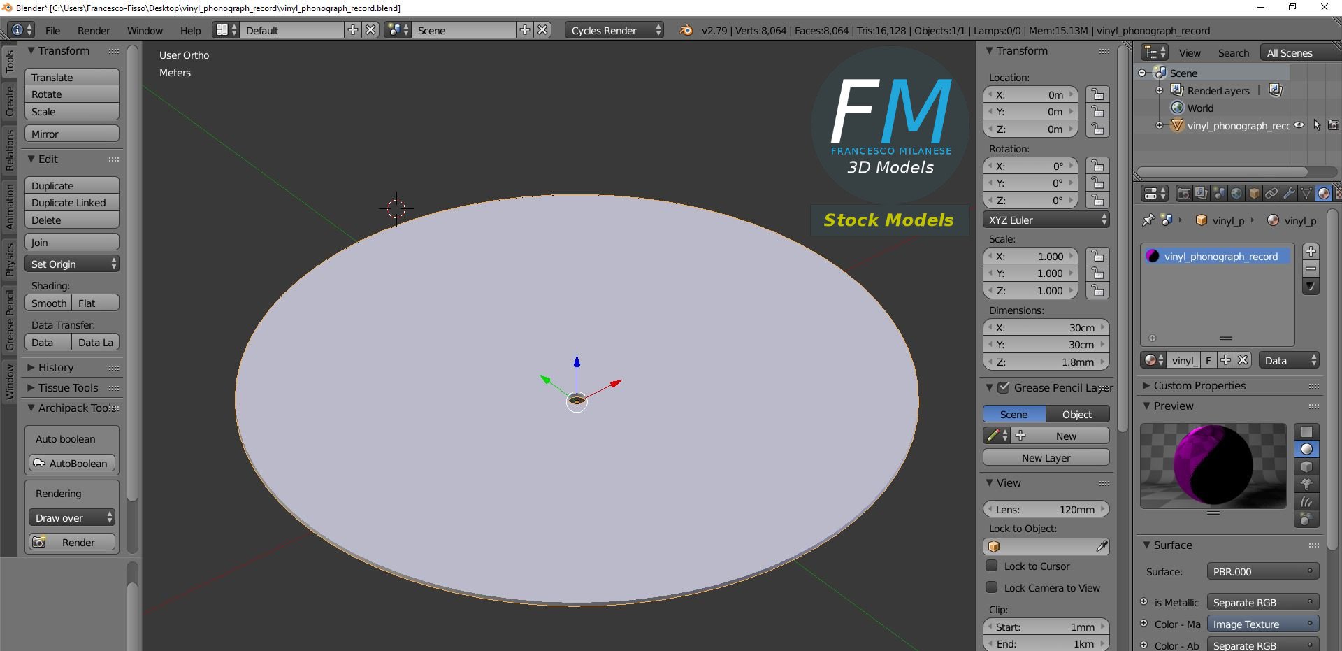 3D MODEL - Vinyl Phonograph Record