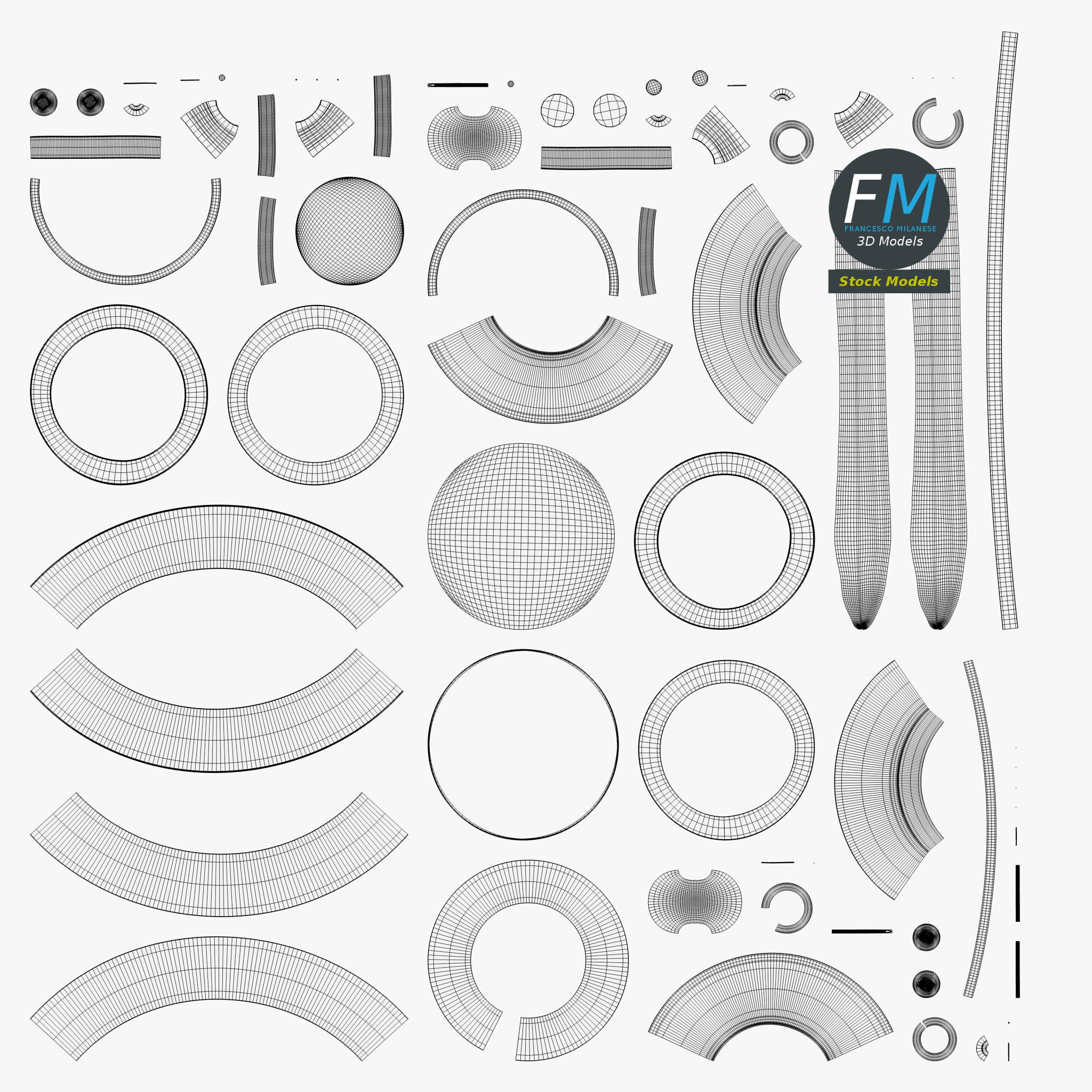 Easily customizable: UV unwrapped geometries, so you can create new Textures (or modify the existing ones) using the UV Layout maps provided in the package (as png with alpha).