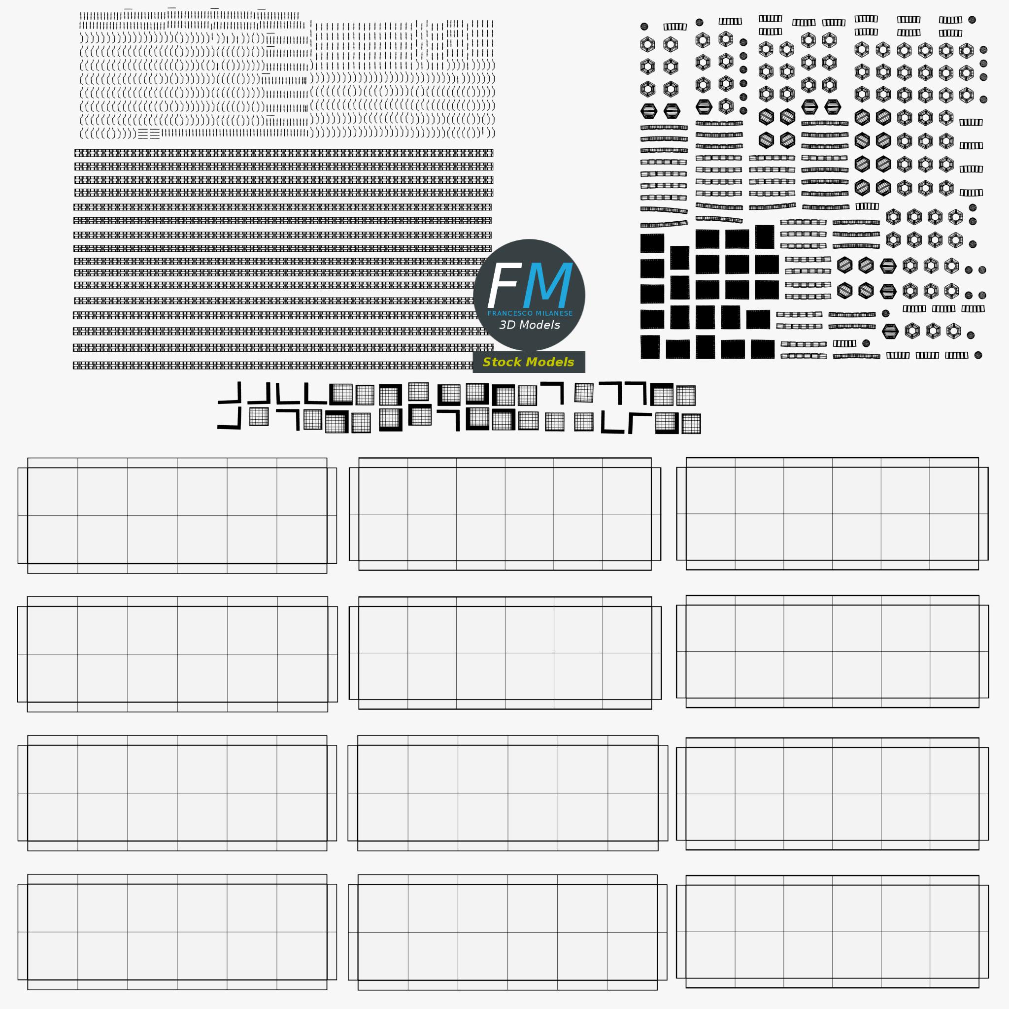 Easily customizable: UV unwrapped geometries, so you can create new Textures (or modify the existing ones) using the UV Layout maps provided in the package (as png with alpha).