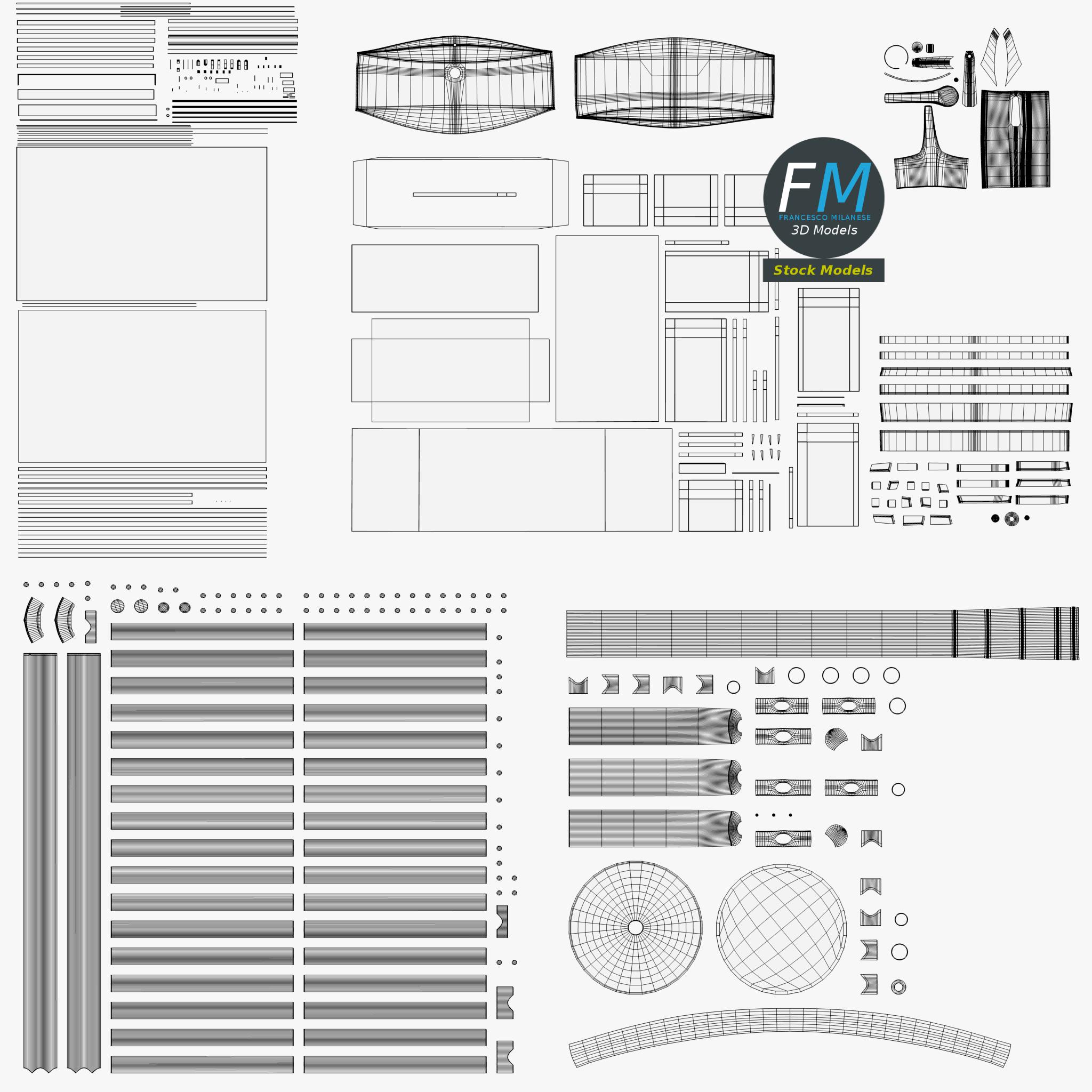 4 Objects (meshes), 1 PBR Material, UV unwrapped (non overlapping UV Layout map provided in the package); UV-mapped Textures.