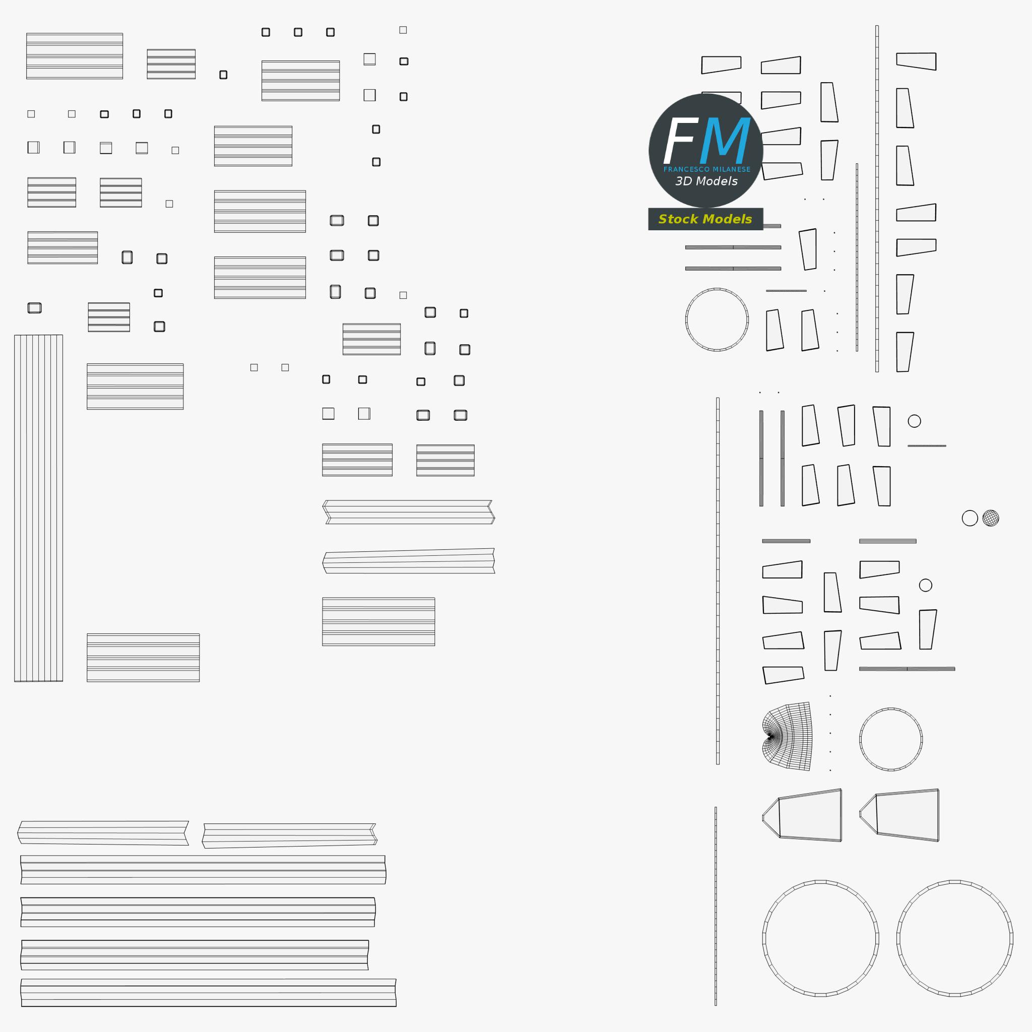 Easily customizable: UV unwrapped geometries, so you can create new Textures (or modify the existing ones) using the UV Layout maps provided in the package (as png with alpha).