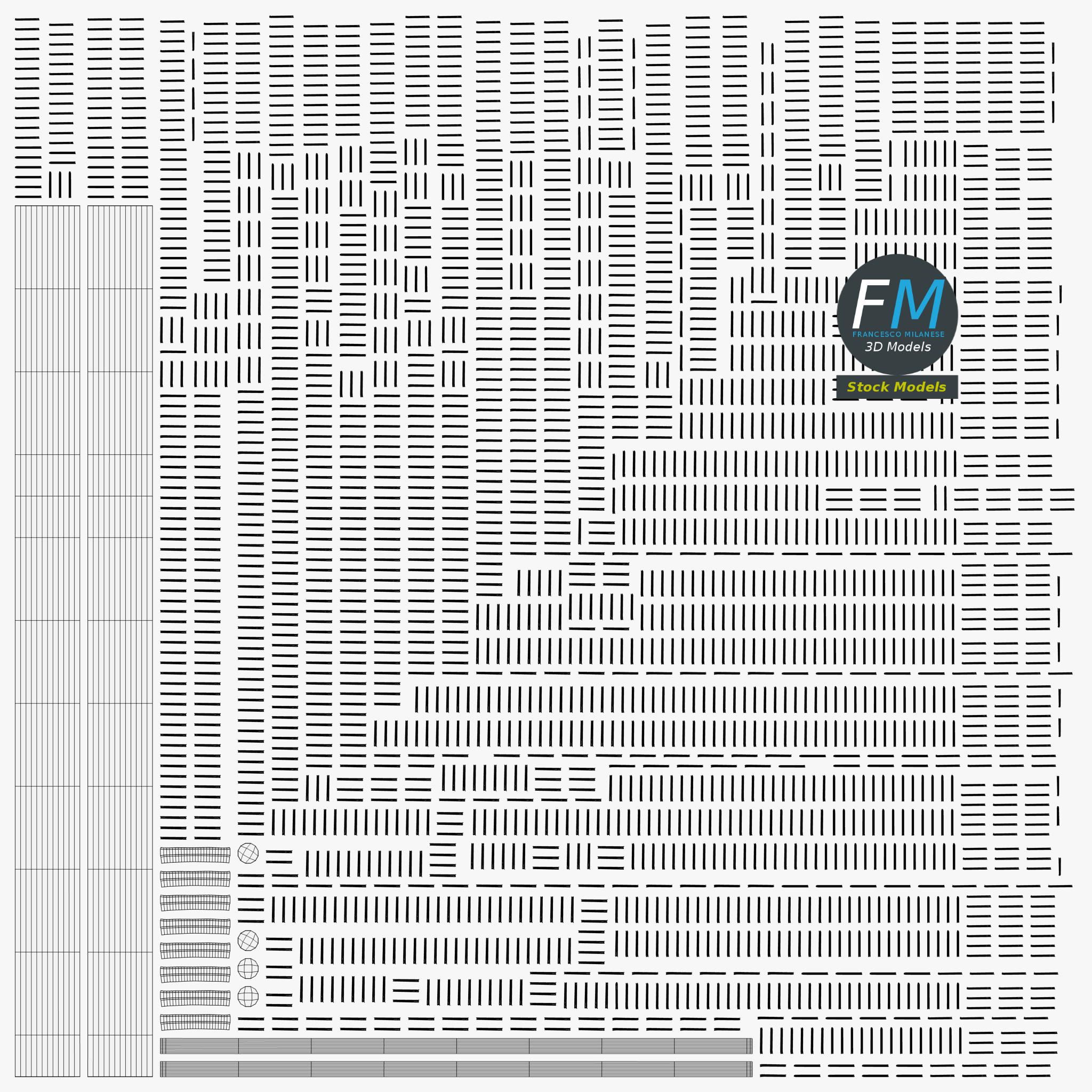 Easily customizable: UV unwrapped geometries, so you can create new Textures (or modify the existing ones) using the UV Layout maps provided in the package (as png with alpha).