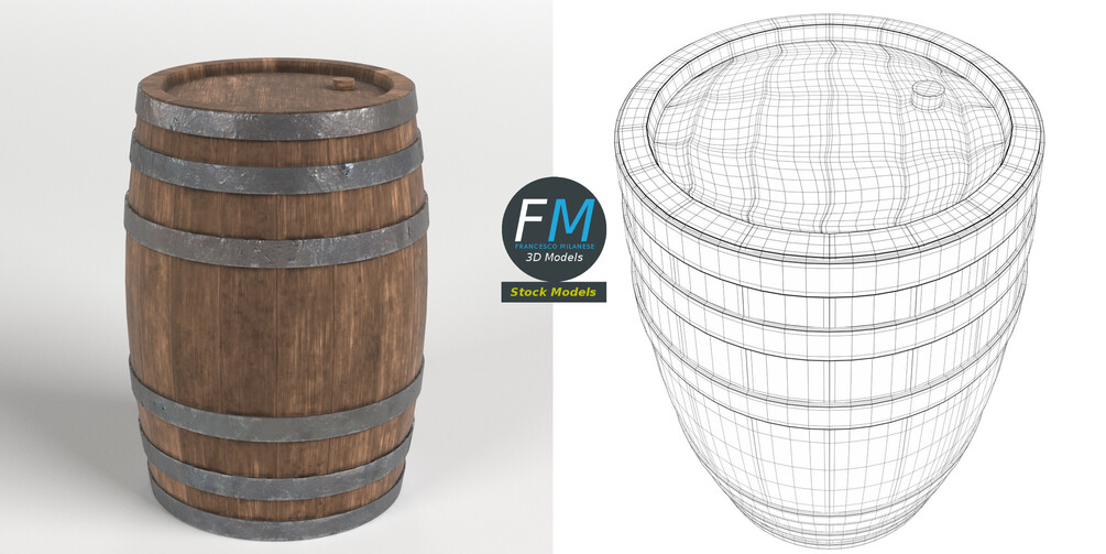 Wooden barrel 3D Model. Production-ready 3D Model, with PBR materials, textures, non overlapping UV Layout map provided in the package.