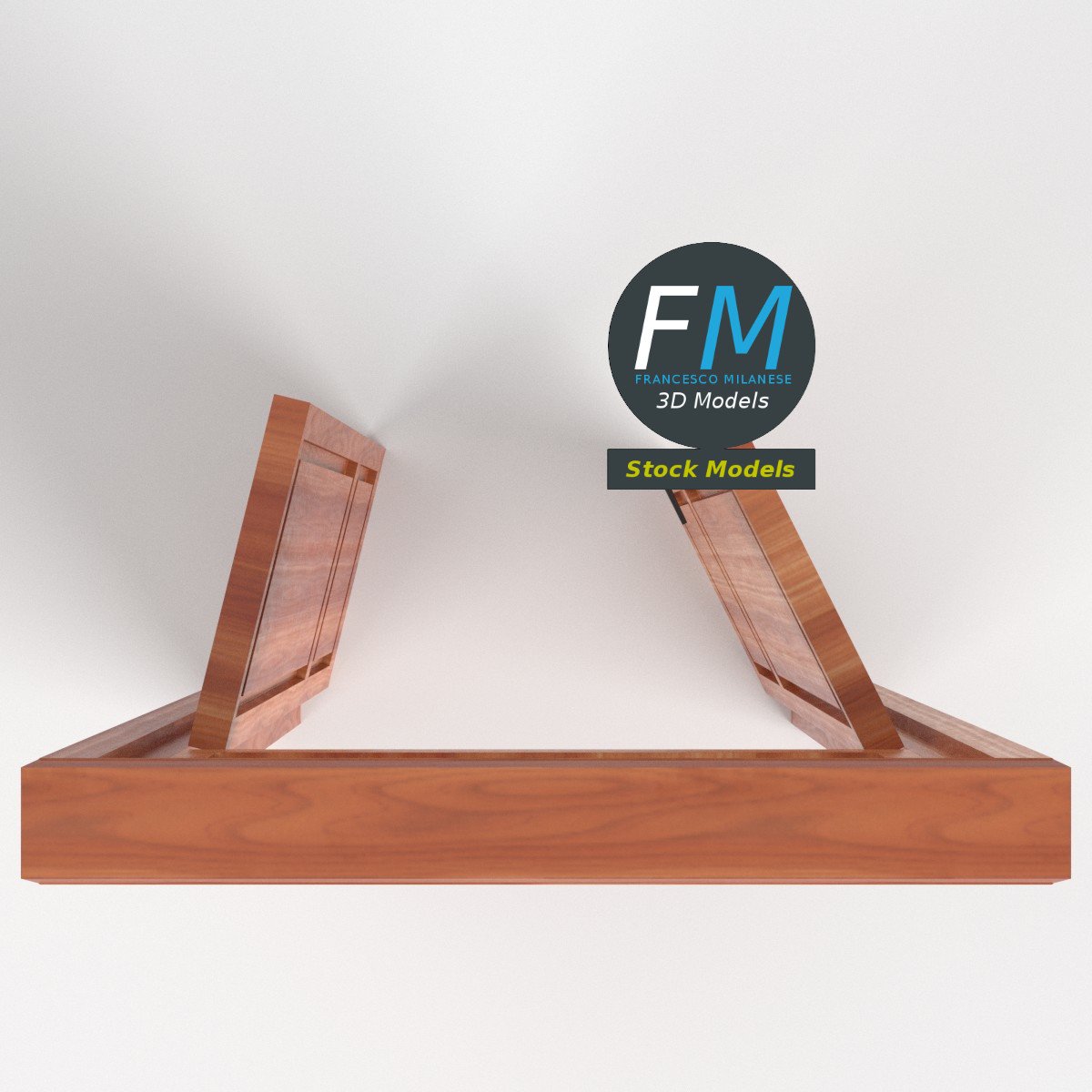 Wooden door with transom glass window on top 3D Model. 5 individual objects (frame, glass top, 2 doors, handle; so, you can easily rotate or even animate the doors), sharing 2 non overlapping UV Layout maps (glass, other), Materials and PBR Textures sets. Production-ready 3D Model, with PBR materials, textures, non overlapping UV Layout map provided in the package.