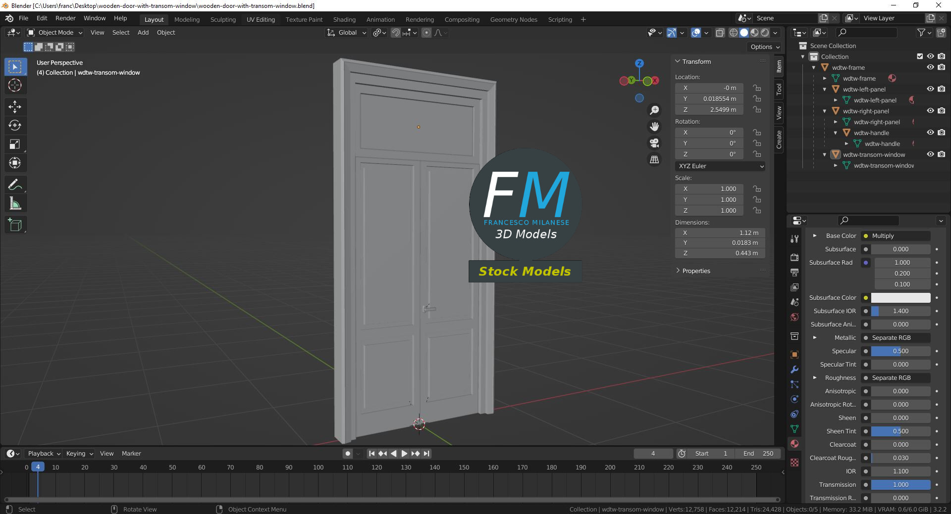 Sketchfab 3D preview: https://sketchfab.com/3d-models/wooden-door-with-transom-window-756d505f3796480d91bc276110e36316