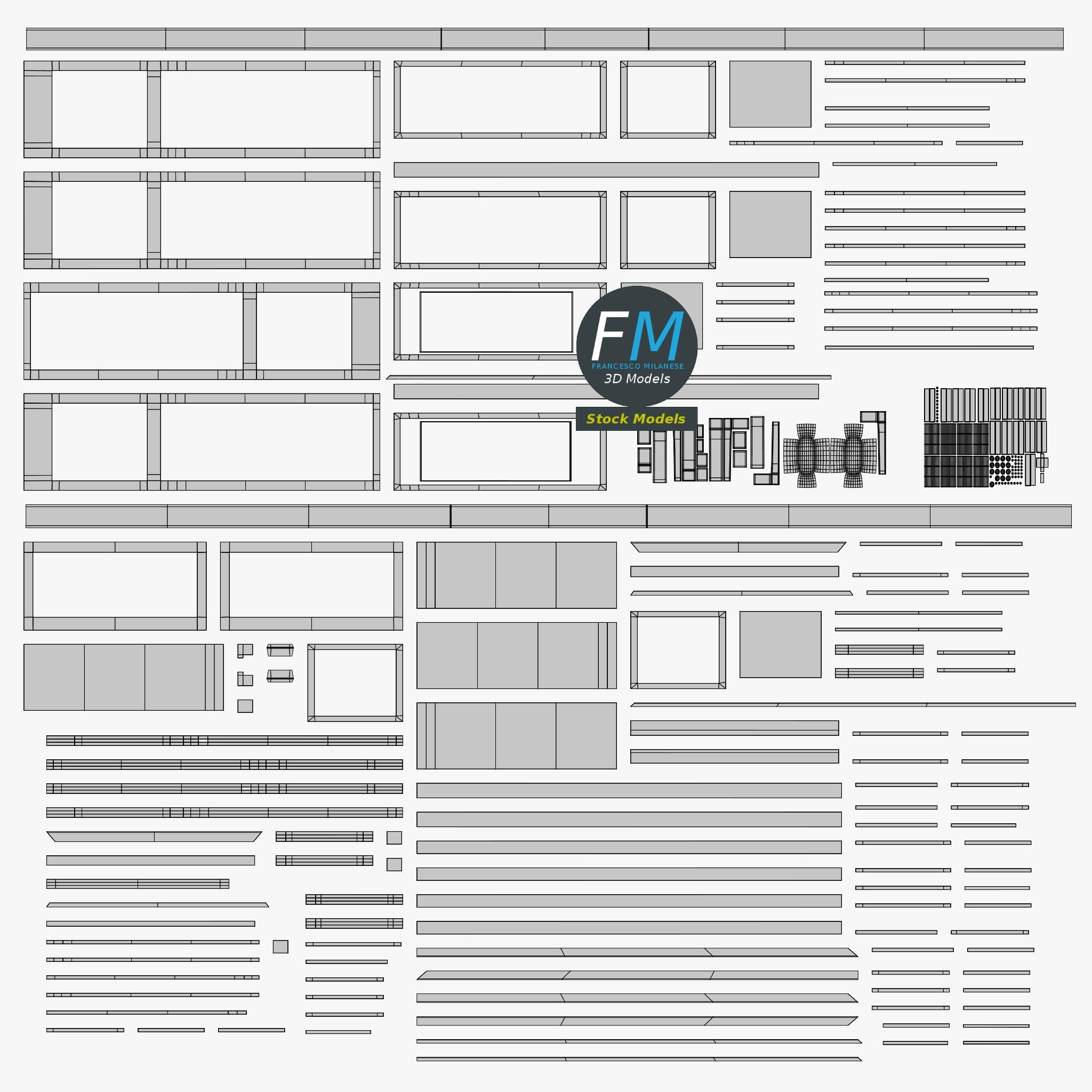 Easily customizable: UV unwrapped geometries, so you can create new Textures (or modify the existing ones) using the UV Layout maps provided in the package (as png with alpha).