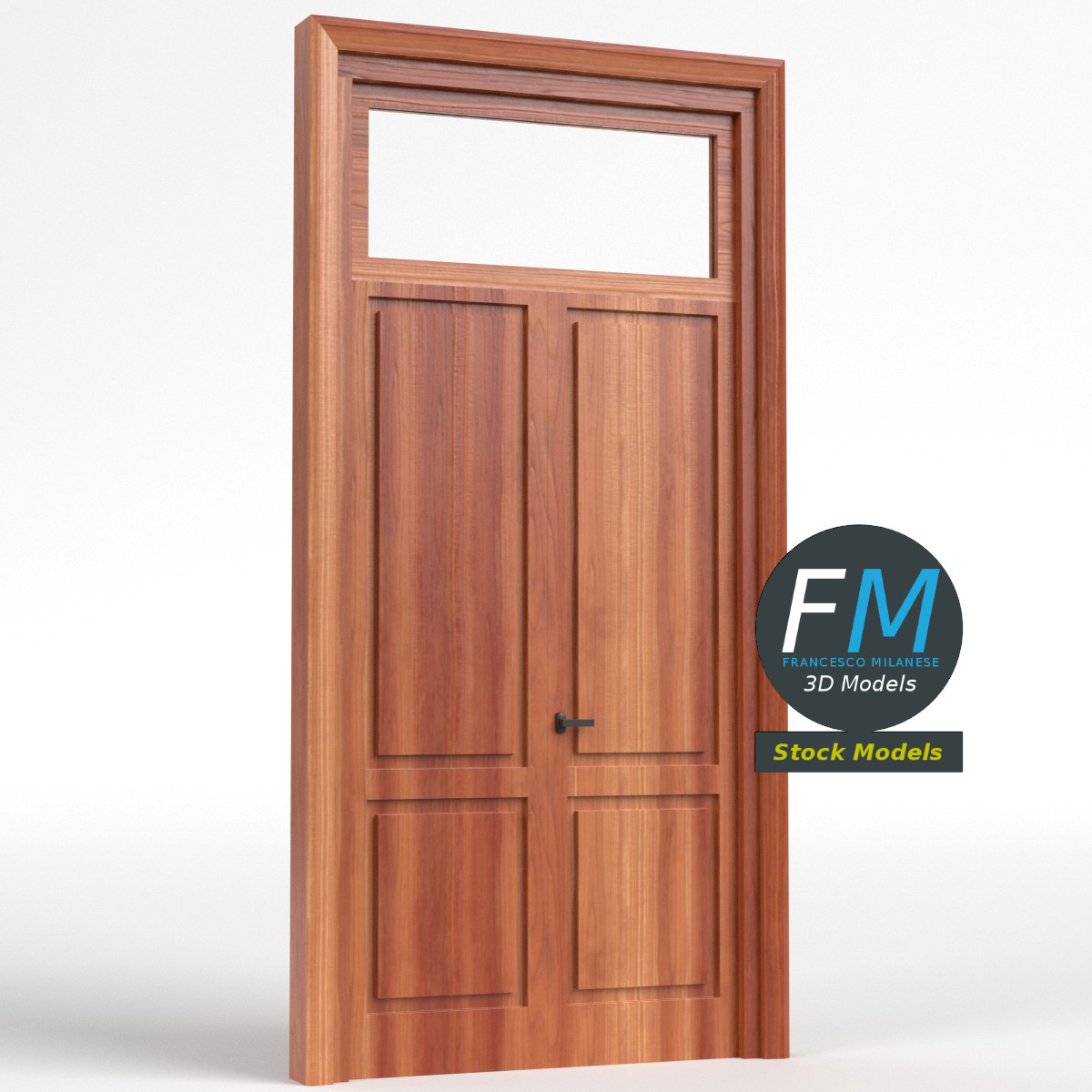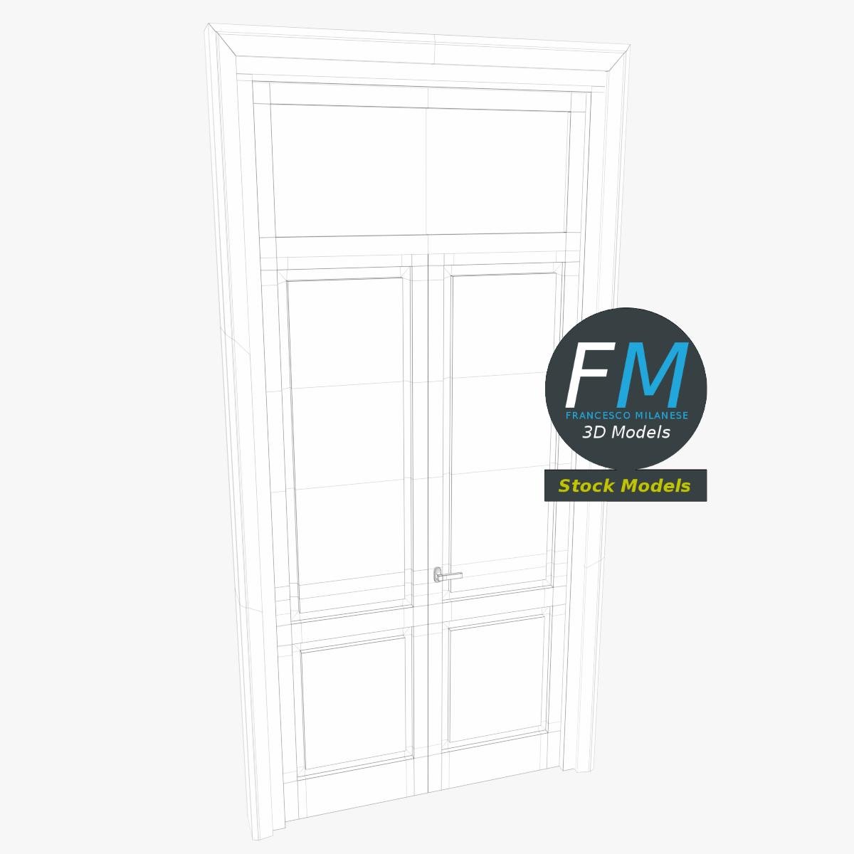 3D MODEL - Wooden door with transom window