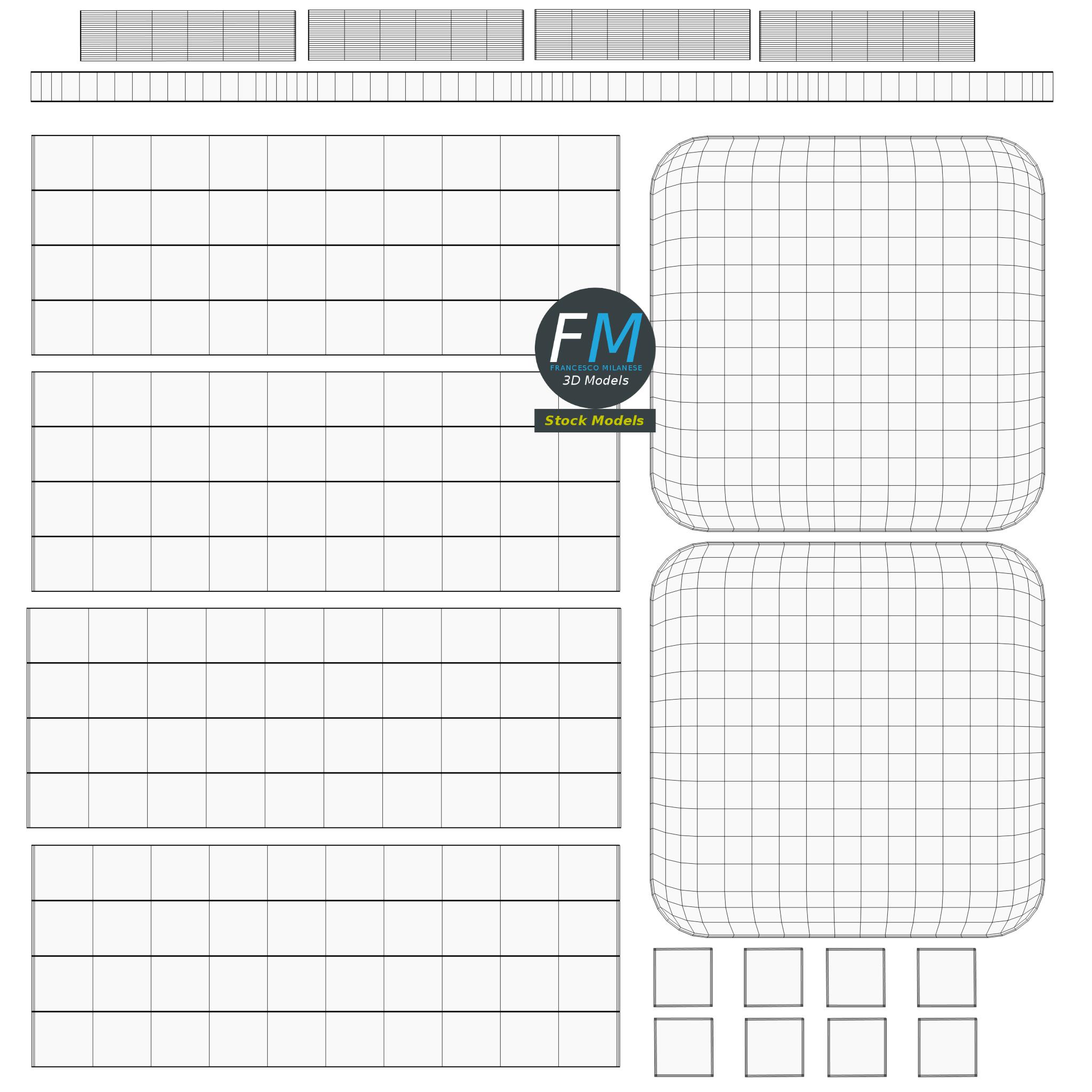 Easily customizable: UV unwrapped geometries, so you can create new Textures (or modify the existing ones) using the UV Layout maps provided in the package (as png with alpha).
