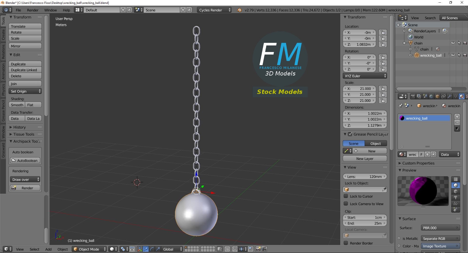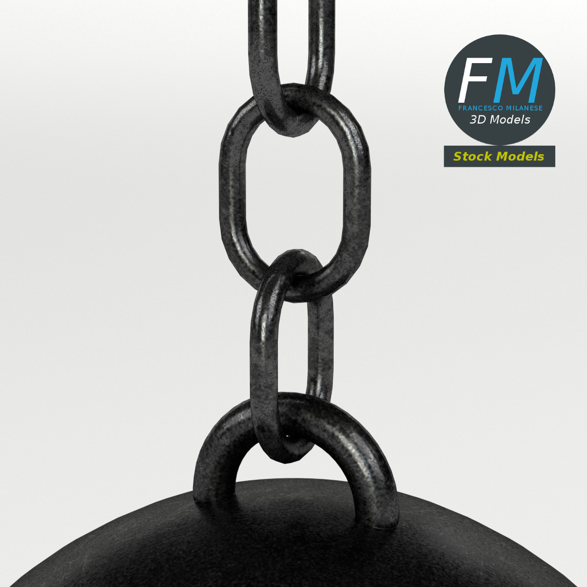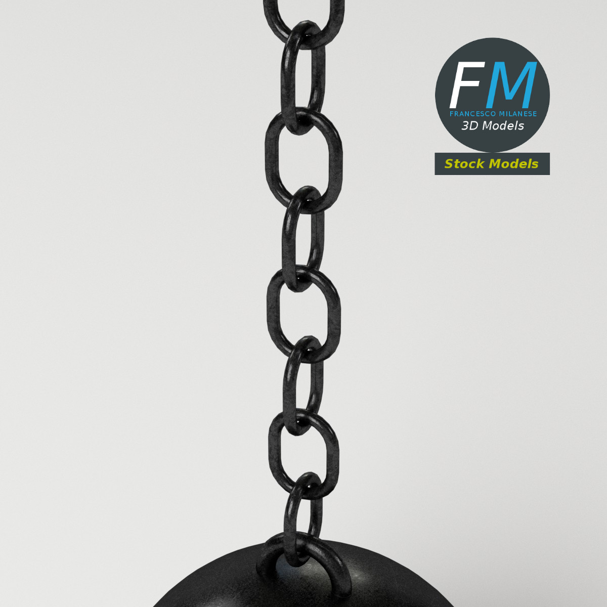 Wrecking ball 3D Model. 2 objects (wrecking ball, chain), each one with its own non overlapping UV Layout map, Material and PBR Textures set. Production-ready 3D Model, with PBR materials, textures, non overlapping UV Layout map provided in the package.