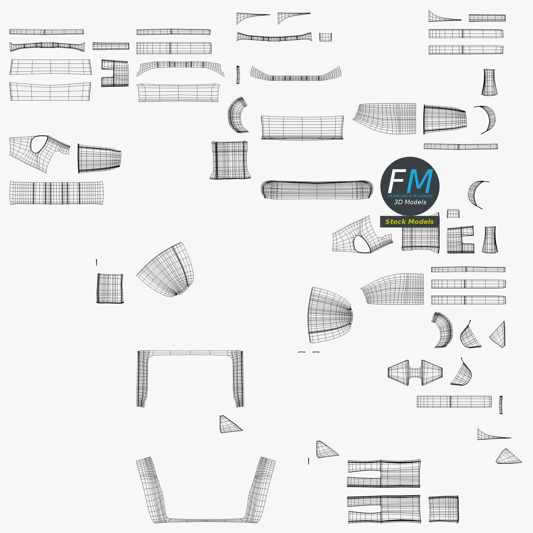 Easily customizable: UV unwrapped geometries, so you can create new Textures (or modify the existing ones) using the UV Layout maps provided in the package (as png with alpha).
