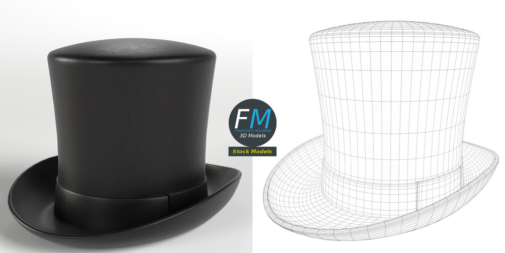 A classic Top Hat (or: cylinder hat, stove pipe hat) 3D Model. Production-ready 3D Model, with PBR materials, textures, and non overlapping UV Layout map provided in the package.